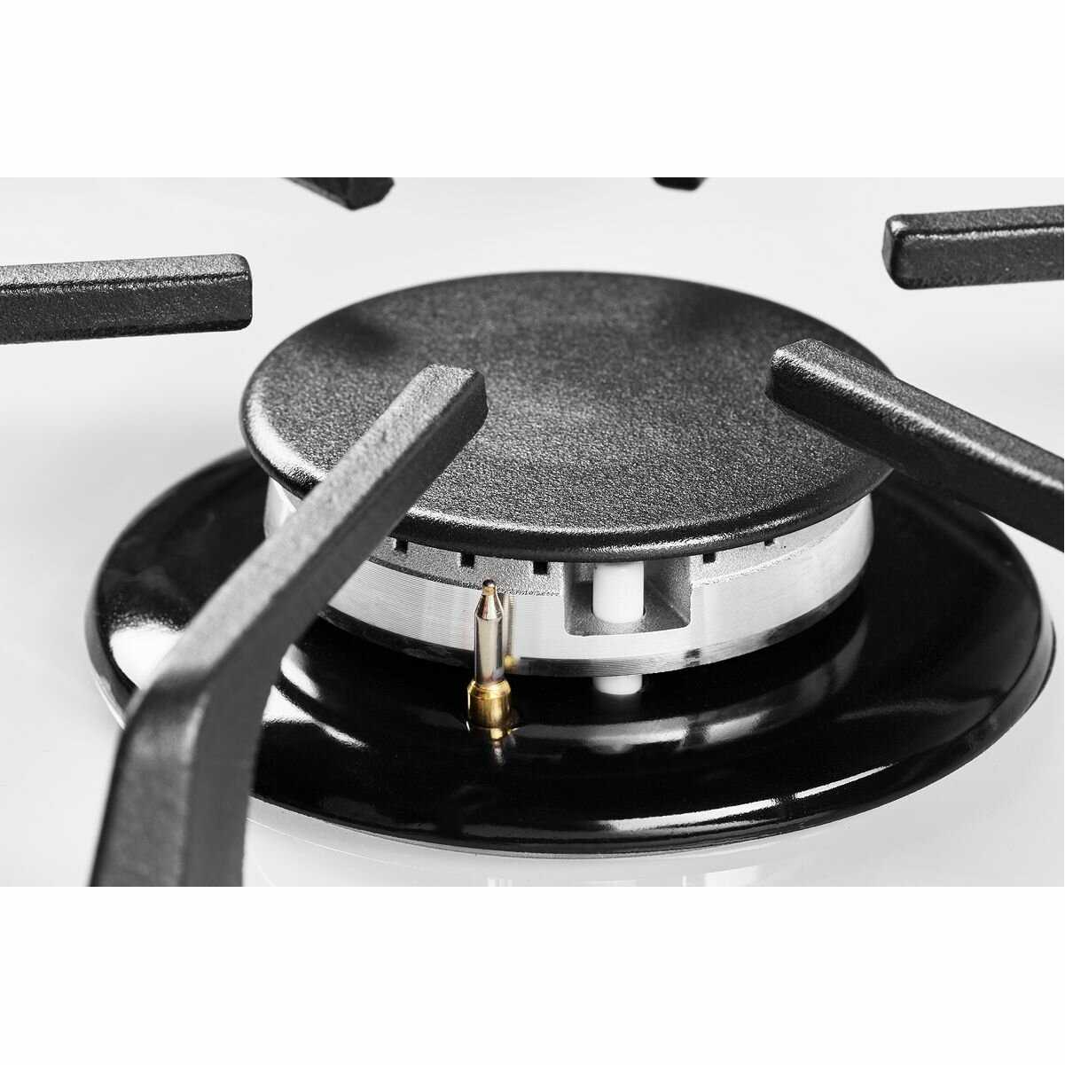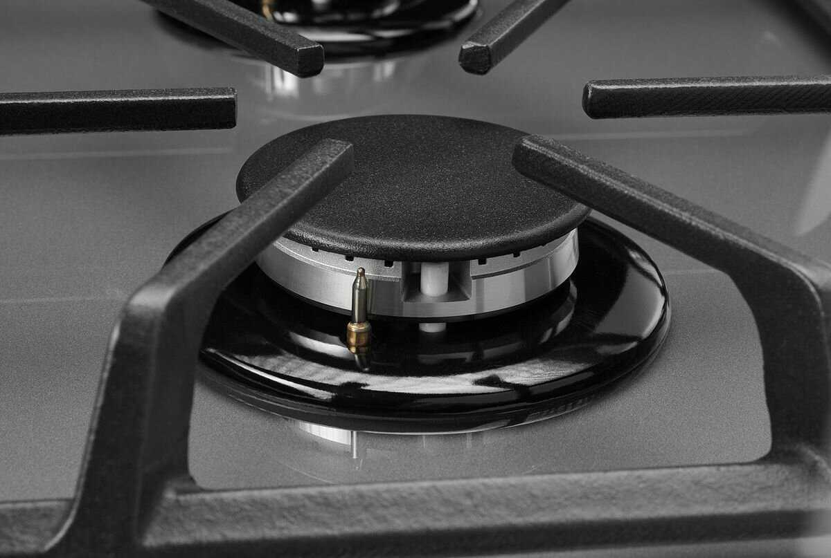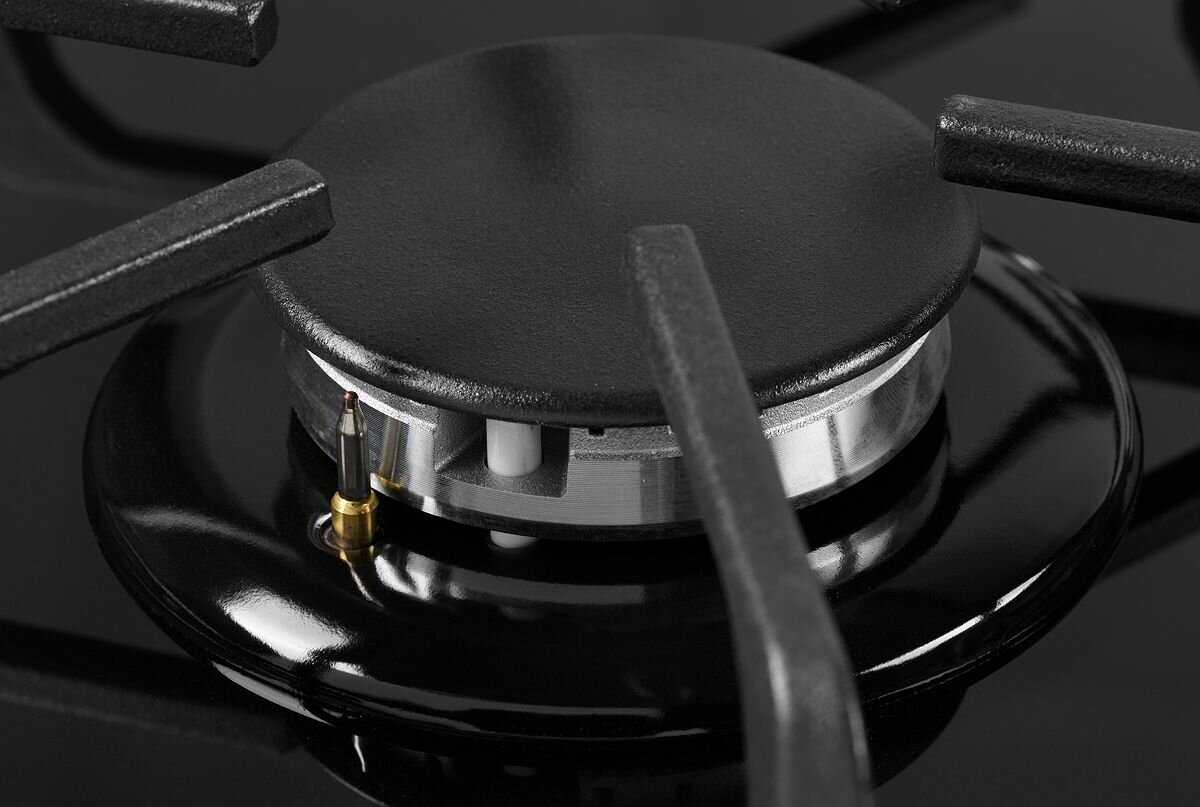 - Функция газ-контроля автоматически отключает подачу газа при затухании пламени от пролива жидкости, обеспечивая дополнительный уровень безопасности.