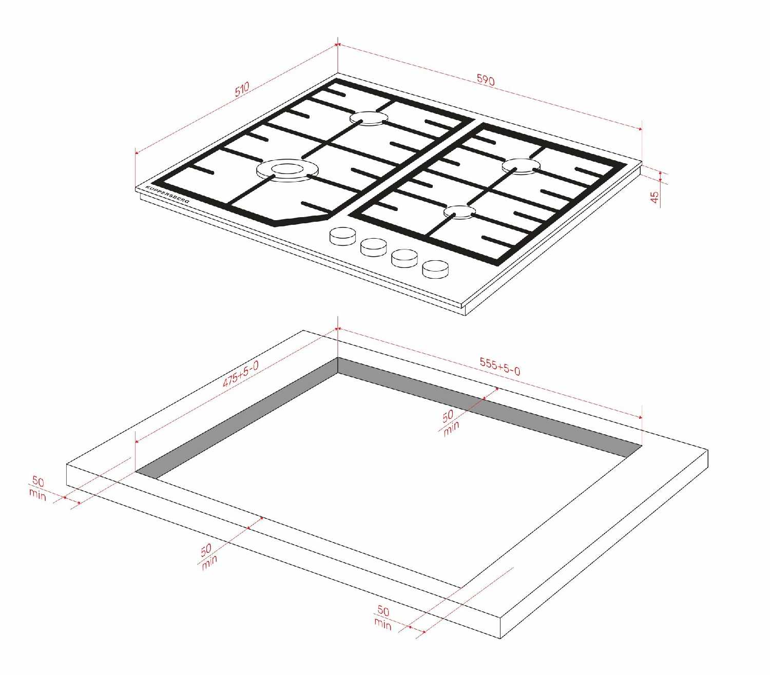 - + Эстетичный внешний вид, большие расстояния между конфорками, улучшенное по сравнению с предыдущей моделью крепление решетки и размещение конфорок. Мощная двойная горелка.