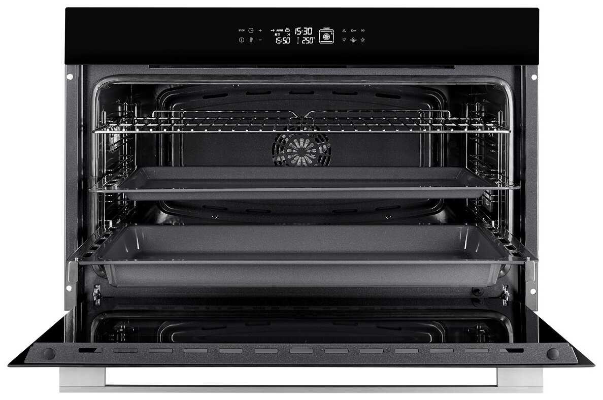 - + Духовой шкаф имеет множество режимов работы, включая конвекцию, гриль и верхний/нижний обогрев. Это позволяет мне экспериментировать с различными рецептами и добиваться идеальных результатов. Сенсорное управление и цифровой дисплей делают процесс настройки температуры и времени приготовления простым и интуитивно понятным.