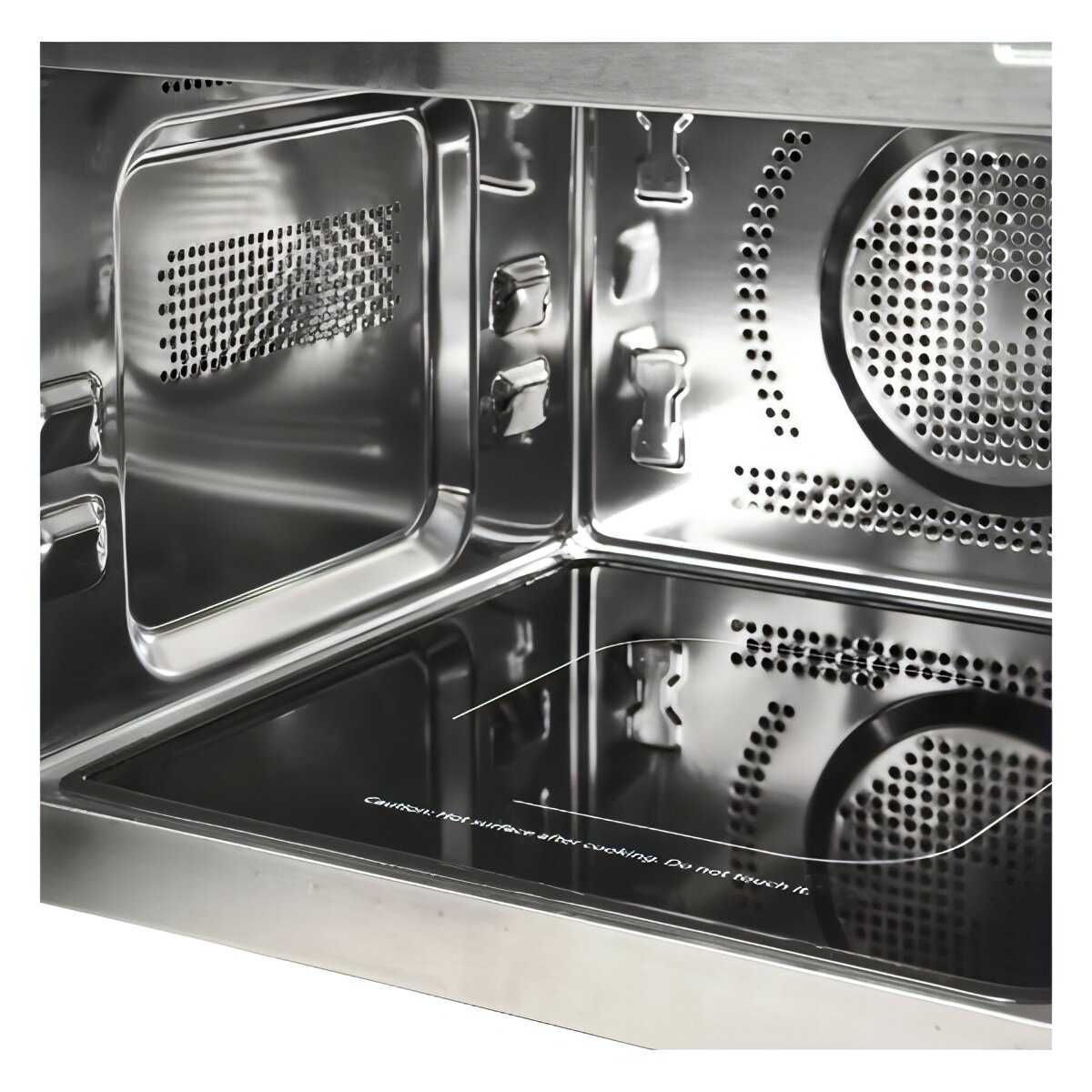 Нержавейка не впитывает запахи и жир, что упрощает уход. Пользователи моют её обычной тряпкой с лимонной кислотой или без агрессивной химии. Отсутствие поворотного стола и выступающих элементов предотвращает скопление грязи в труднодоступных местах. -