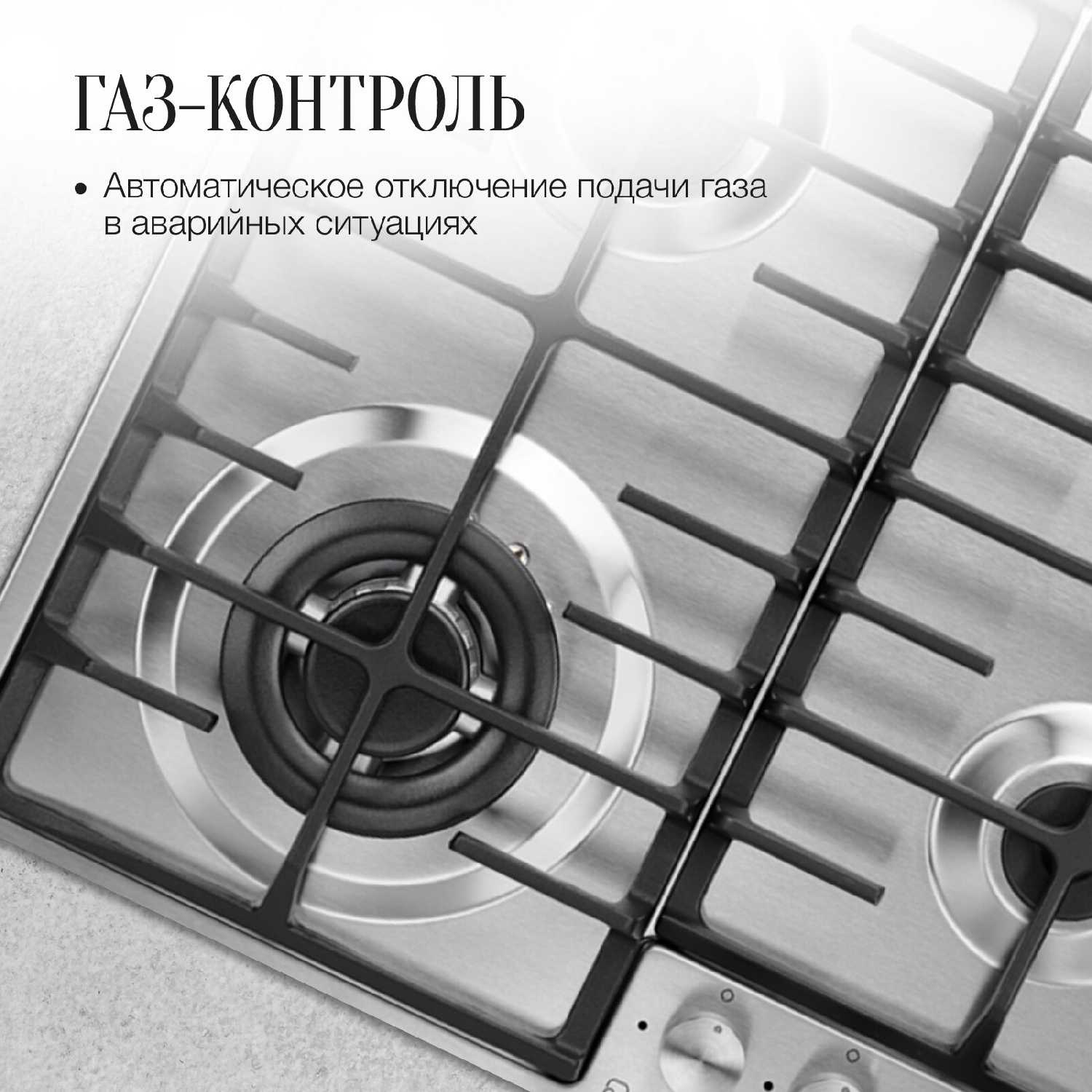 - + Красивый дизайн. Конфорки хорошо горят, ручки легко вращаются.