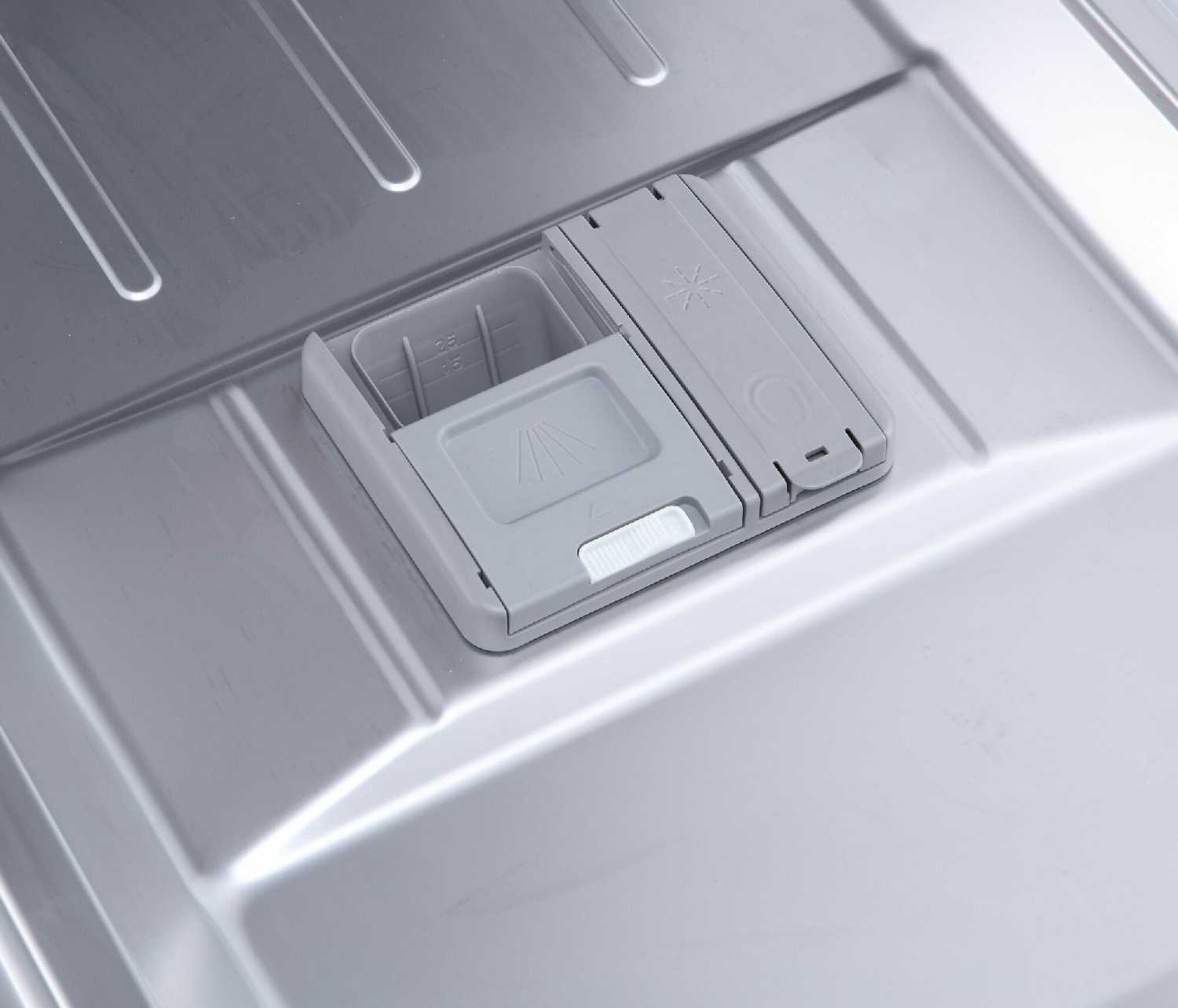 - Датчик жесткости воды автоматически регулирует количество соли и ополаскивателя.