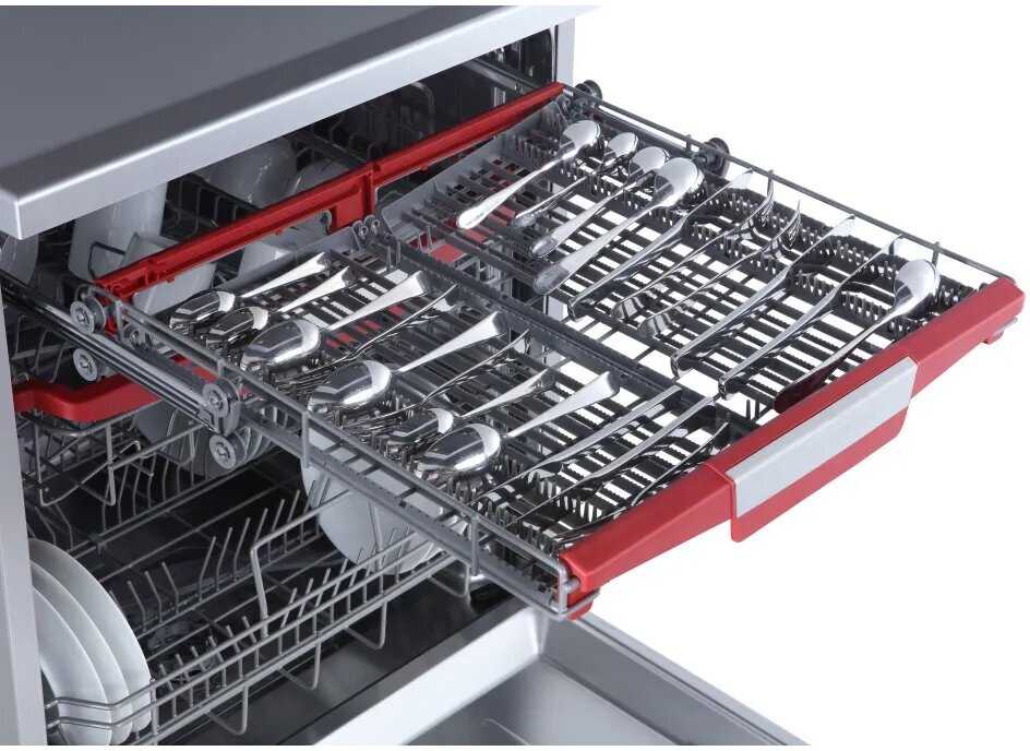- Третий лоток для столовых приборов позволяет освободить место в основном отсеке для крупной посуды.