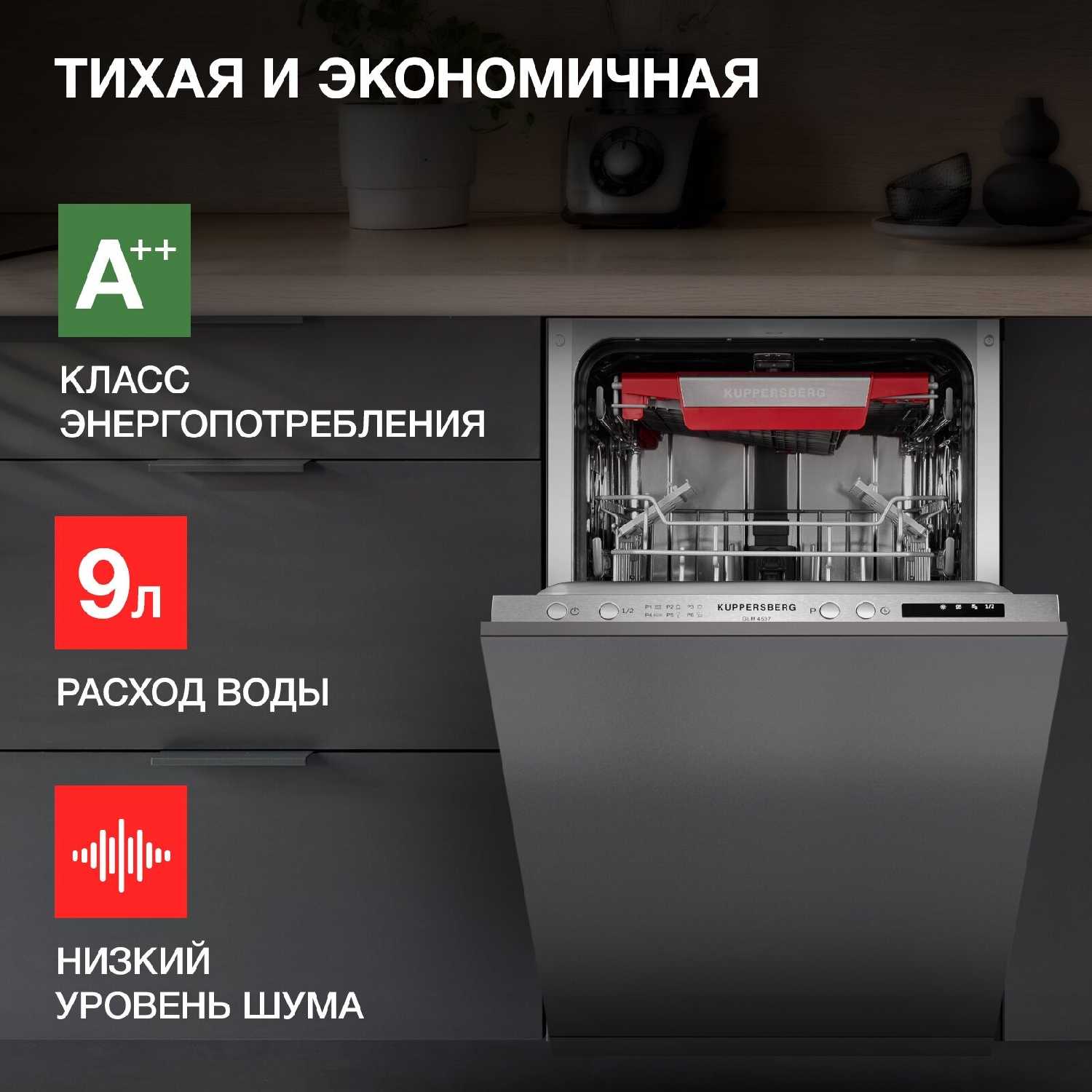 Эффективность мойки и работа с различными типами загрязнений: Качество мойки в стандартных и сложных режимах. Анализ отзывов показывает, что посудомоечная машина в большинстве случаев демонстрирует высокую эффективность очистки. Пользователи отмечают, что стандартные программы, особенно автоматическая (Авто), успешно справляются с повседневными загрязнениями, оставляя посуду чистой без разводов и подтеков. Для сложных задач, таких как пригоревший жир на сковородах, нагар на гриль-решетках или засохшие остатки пищи, пользователи успешно применяют интенсивный режим, который, по их наблюдениям, отмывает даже стойкие загрязнения. Важным аспектом, влияющим на результат, пользователи называют правильную загрузку посуды и использование качественных моющих средств; некоторые отмечают, что эксперименты с дозировкой соли и ополаскивателя помогают добиться идеального результата без белого налета на стекле. Эмпирические данные свидетельствуют, что машина экономит значительное количество воды – около 9 литров за цикл, что подтверждается снижением счетов за коммунальные услуги. Однако встречаются единичные замечания о том, что на коротких программах или при использовании определенных типов таблеток возможно неполное растворение моющего средства или остатки пищи на столовых приборах, что требует внимания к выбору режима и средств. Производительность сушки и итоговое состояние посуды. Оценка функции сушки среди пользователей разделилась. Значительная часть владельцев довольна результатом, отмечая, что посуда после цикла готова к использованию и не требует дополнительного вытирания. В то же время, существует ряд отзывов, указывающих на то, что после окончания мойки посуда, особенно в верхней корзине для столовых приборов, может оставаться влажной, с каплями воды. Некоторые пользователи связывают это с особенностью конденсационной сушки, характерной для многих современных моделей, и отмечают, что приоткрывание дверцы после цикла улучшает результат. Данный аспект является важным для формирования реалистичных ожиданий, так как машина не обеспечивает абсолютно сухую посуду, сравнимую с ручным вытиранием. Качество сушки также может зависеть от выбранного режима мойки и правильной настройки расхода ополаскивателя, что требует от пользователя некоторой адаптации и изучения инструкции для достижения оптимального результата в конкретных условиях эксплуатации. Сравнительный анализ с конкурентами (Bosch, Neff, Whirlpool). Пользователи, имевшие опыт эксплуатации посудомоечных машин других брендов, предоставляют ценные сравнительные данные. В сравнении с техникой Bosch, модель Kuppersberg, по мнению некоторых, демонстрирует сопоставимое или даже лучшее качество мойки, при этом отмечается более выгодное соотношение цены и функционала. Отдельно подчеркивается удобство третьего полноценного лотка для столовых приборов в противовес традиционной корзине, что увеличивает вместимость и улучшает качество мойки вилок и ложек. При замене старой машины Neff, отработавшей 10 лет, новая модель показала себя не хуже по основным параметрам. Также отмечается совместимость посадочных мест и креплений фасада с некоторыми моделями Whirlpool, что упрощает замену техники без необходимости переделки мебели. Эти наблюдения указывают на то, что продукт позици