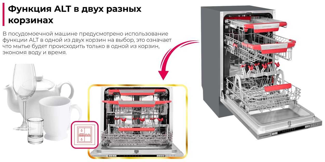 - Функция половинной загрузки сокращает потребление на 30% при малом количестве посуды.