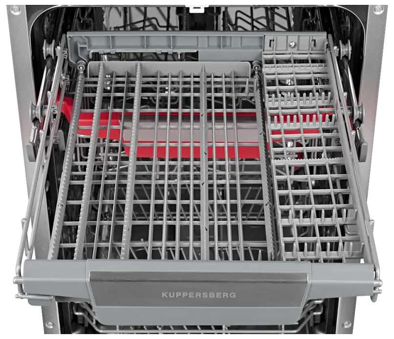 - Верхняя корзина для столовых приборов с отдельным разбрызгивателем обеспечивает тщательное мытье вилок и ложек даже в труднодоступных местах.
