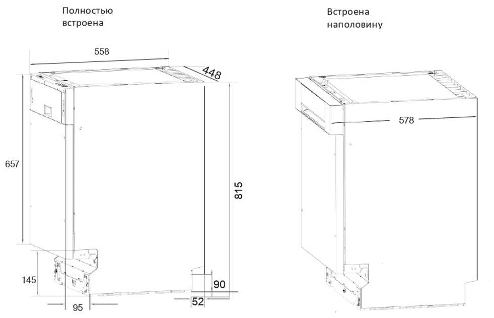 - + Доставка в срок. Моет посуду хорошо, куча режимов мойки, но все достаточно долгие, даже когда 1/2 ставишь. Когда моет красный луч на полу. Красивая внутри и снаружи тоже обшита хорошо, что пока стоит без фасада, тоже отлично смотрится.