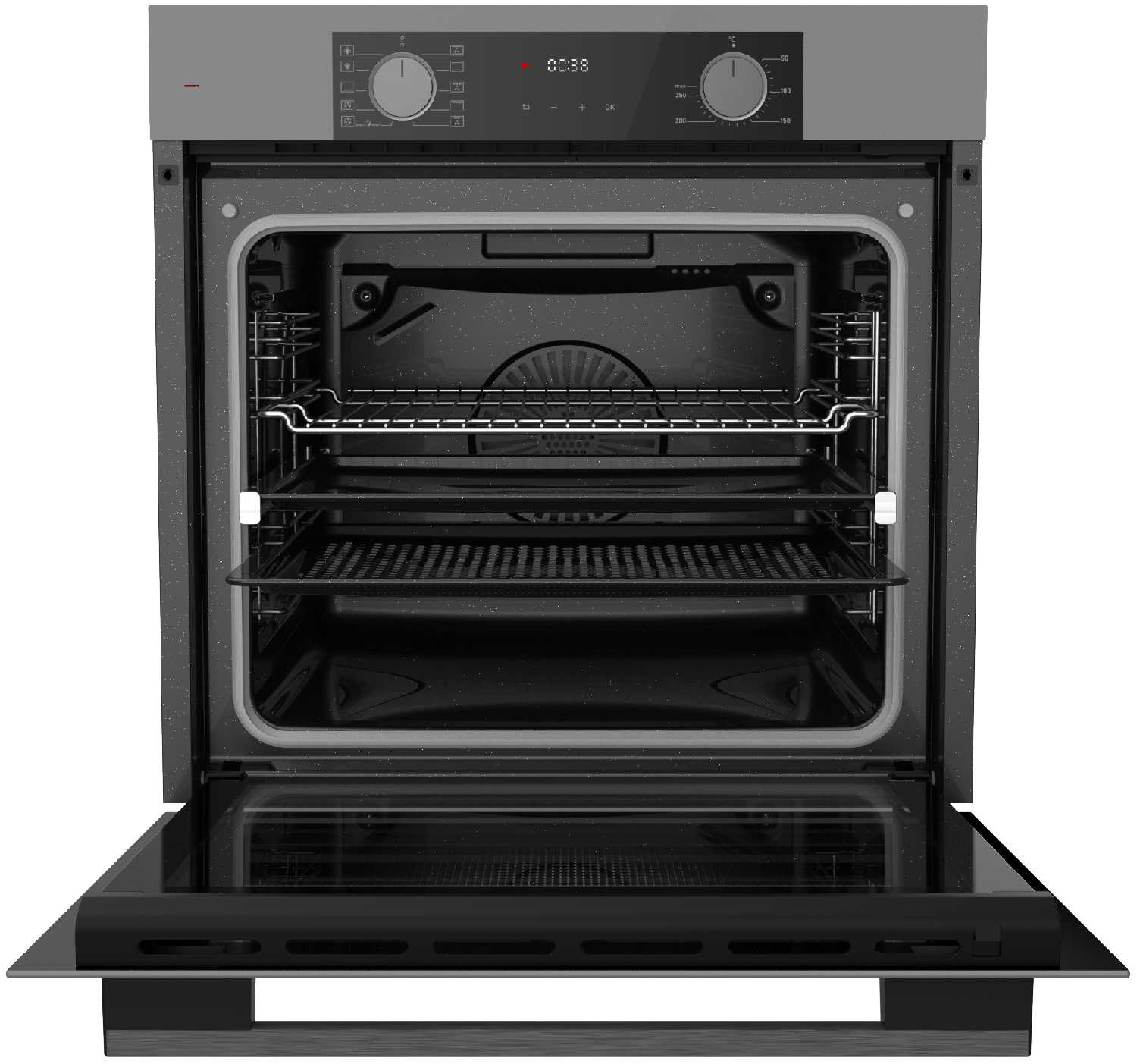 - В комплекте два противня и решётка, что удобно для многоуровневой готовки.