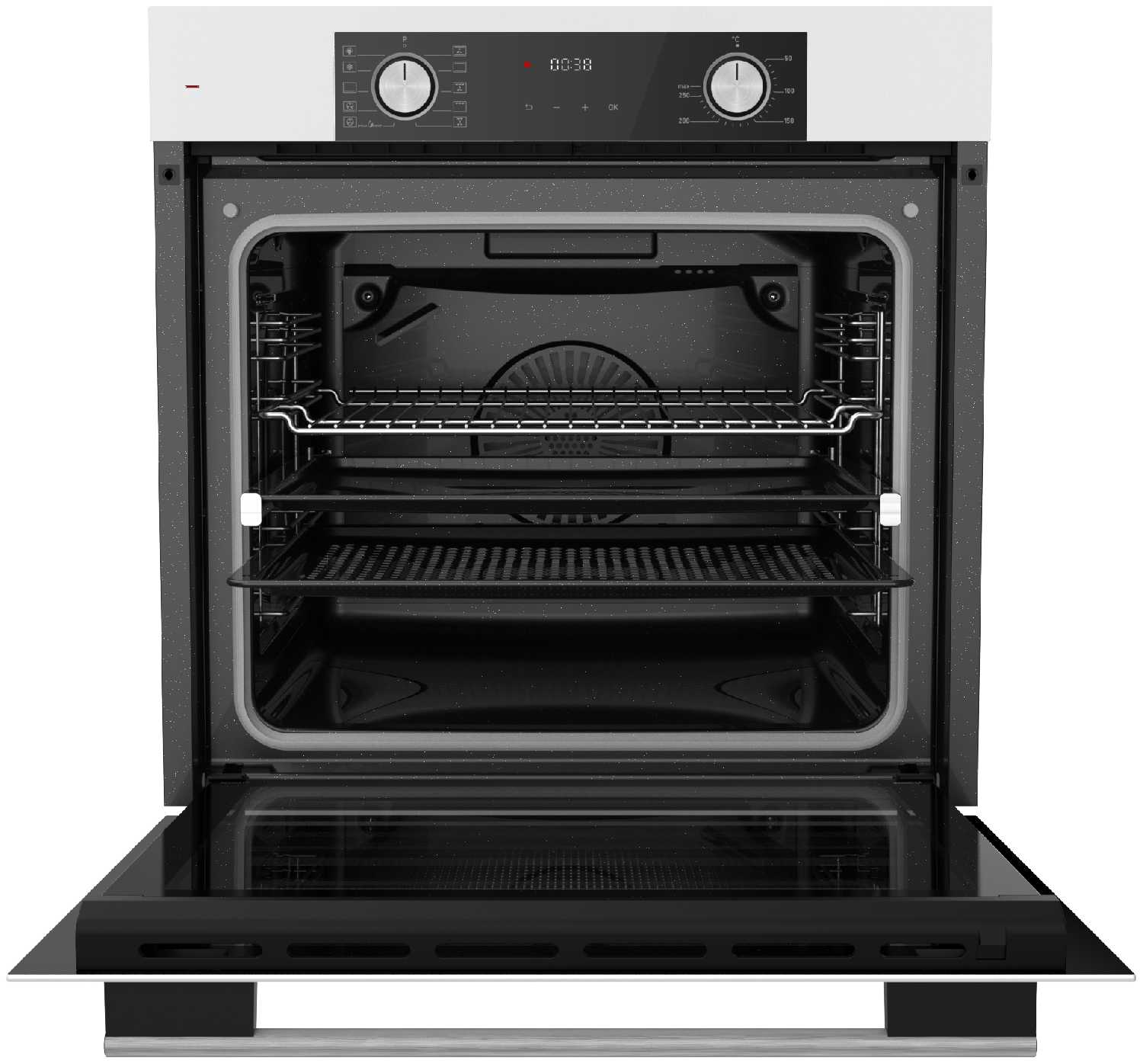 - + Большой и вместительный духовой шкаф, дверца с автодоводочиком, Противень с дырками помимо обычных