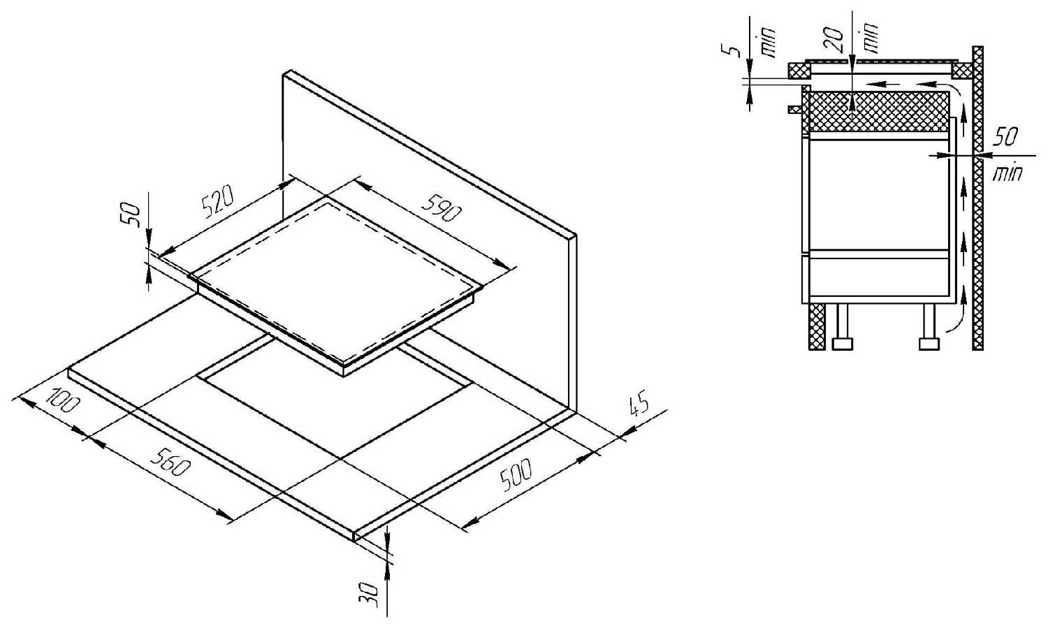- - короткий шнур подключения к сети.При установке розетки под варочную панель учитывайте что кабель длиной меньше одного метра.