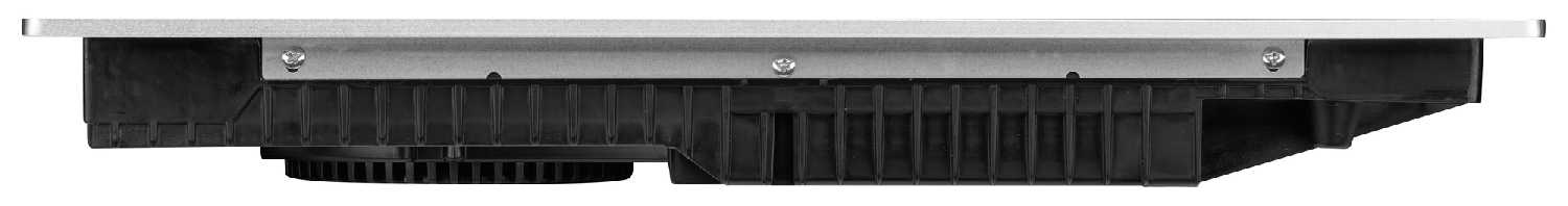 Алюминиевая рамка защищает стеклянные края от сколов при ударах, а также визуально отделяет панель от столешницы, предотвращая попадание крошек и влаги под корпус. В отзывах хвалят эстетику: сочетание черного стекла и серебристой окантовки выглядит стильно и легко вписывается в современный интерьер. -