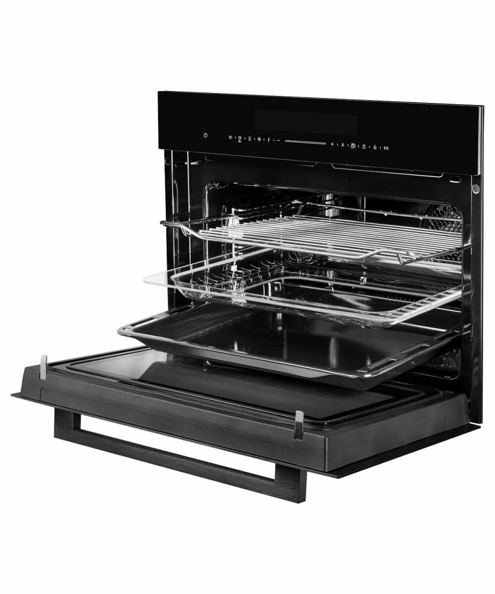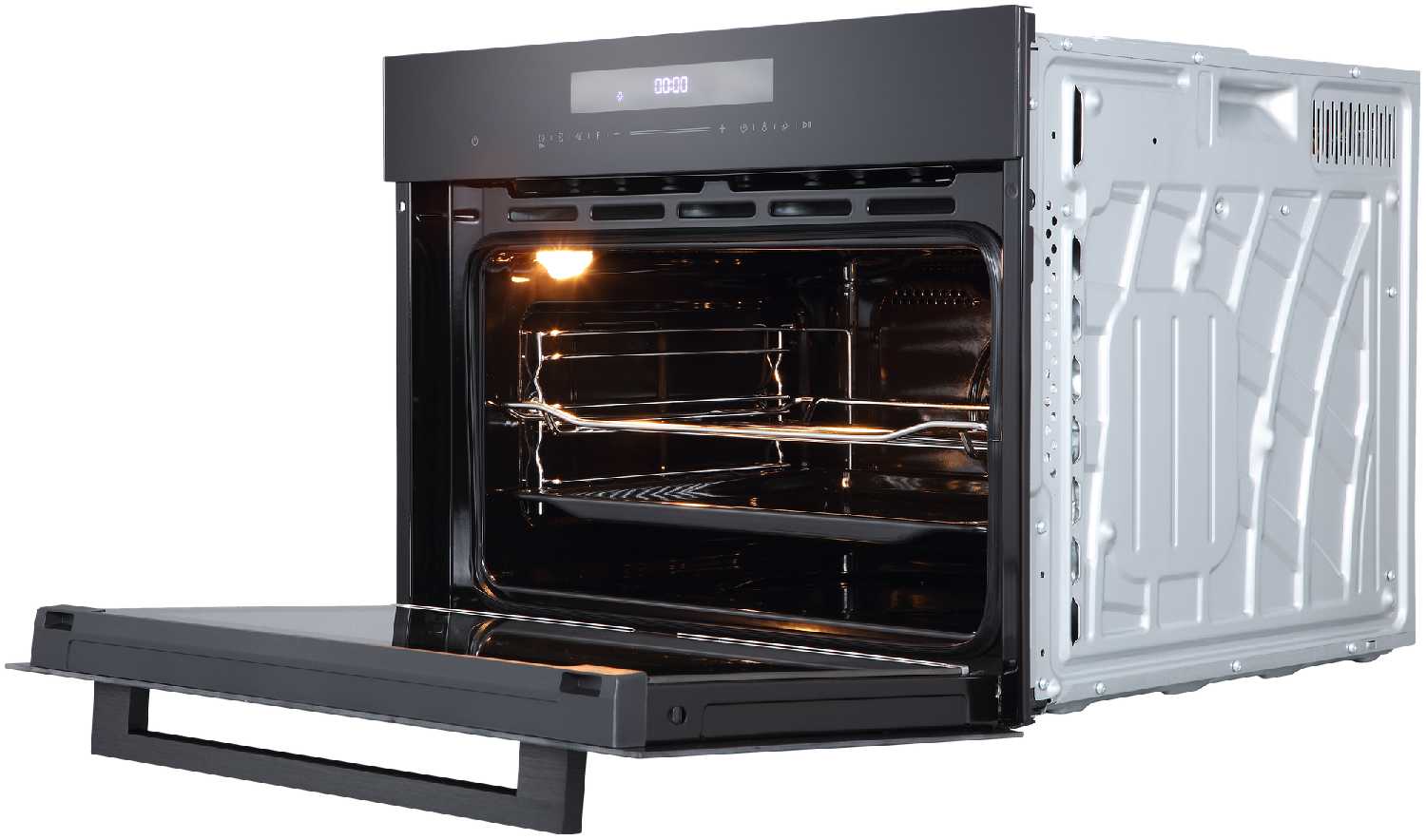 - Гладкая каталитическая эмаль внутренних стенок и функция паровой очистки позволяют удалять пригоревший жир без абразивных средств.
