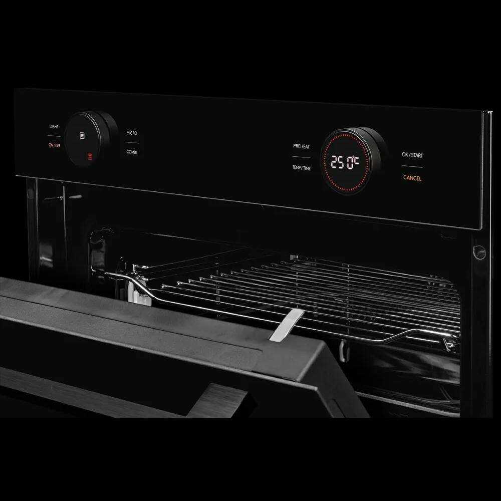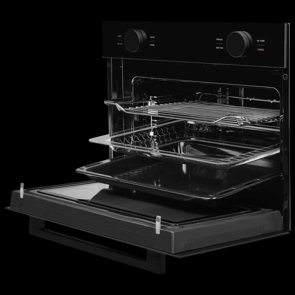- + Компактный духовой шкаф с функцией микроволновки экономит место. Современный дизайн, удобное управление.