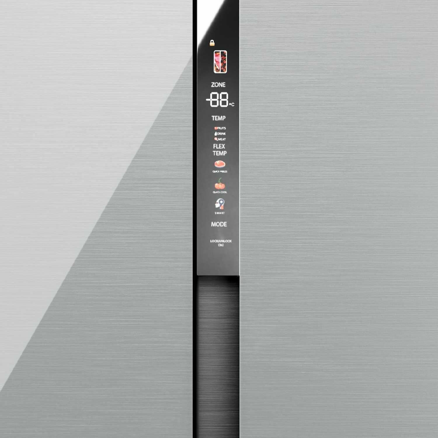 Цветной сенсорный дисплей, расположенный на одной из дверей, позволяет независимо регулировать температуру в холодильном и морозильном отделениях, а также в зоне свежести. Некоторые модели оснащены интеллектуальным режимом, который автоматически корректирует работу компрессора в зависимости от уровня влажности и количества загруженных продуктов. Управление интуитивно понятное и наглядное, предоставляя полный контроль над климатическими условиями внутри камер. -