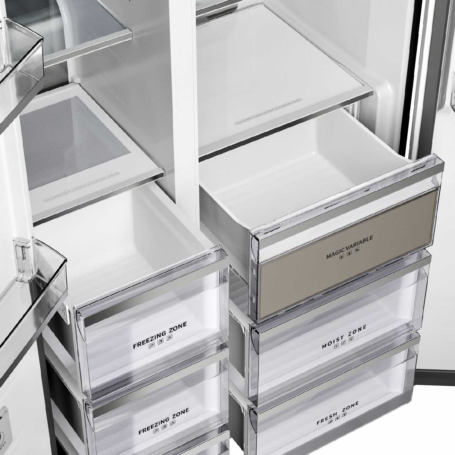 Управление, функциональность и дополнительные опции: Сенсорный цветной дисплей, интегрированный в одну из дверей, предоставляет интуитивно понятный интерфейс для точного контроля и регулировки температуры отдельно в холодильном и морозильном отделениях, а также в зоне свежести. Наличие интеллектуальных режимов работы, таких как автоматическая адаптация мощности охлаждения в зависимости от уровня влажности и температуры загруженных продуктов, позволяет оптимизировать энергопотребление и обеспечить наилучшие условия хранения. Опция ультрафиолетовой обработки в одной из зон (по заявлениям пользователей) способствует уничтожению бактерий и позволяет дольше сохранять свежесть фруктов, овощей и зелени, что подтверждается их опытом. Функция звукового оповещения о неплотно закрытой двери или изменении температурного режима повышает надежность эксплуатации и предотвращает порчу продуктов. Возможность перенавешивания дверей на другую сторону simplifies процесс встраивания аппарата в существующую кухонную планировку. Все настройки и режимы сохраняются при отключении электроэнергии, что обеспечивает стабильность работы в условиях нестабильного энергоснабжения.