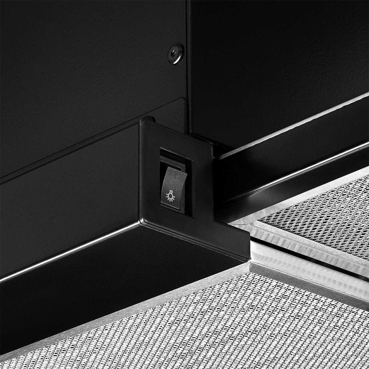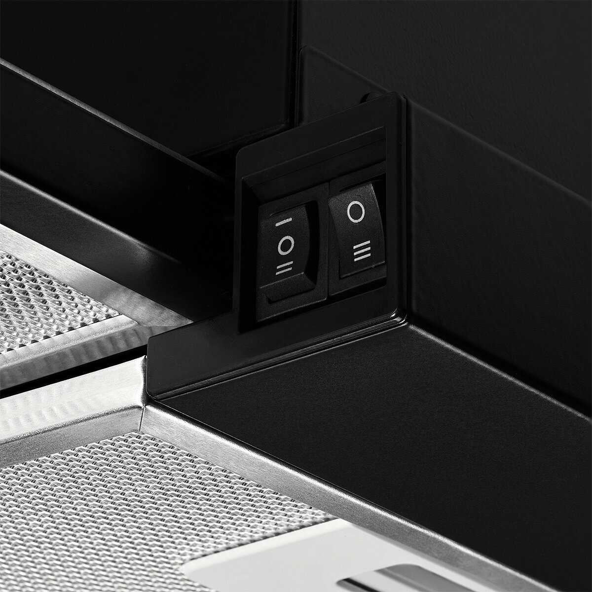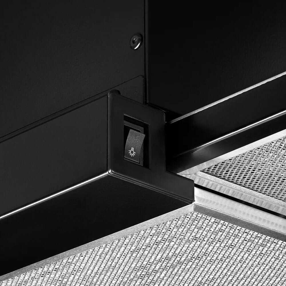 Конструкция признана крайне удобной: козырек легко выдвигается при необходимости и так же просто задвигается обратно, не занимая лишнего пространства. Пользователи ценят эту особенность за лаконичность — когда вытяжка не нужна, она полностью "прячется", не нарушая гармонию кухни и не выступая за пределы шкафа. -