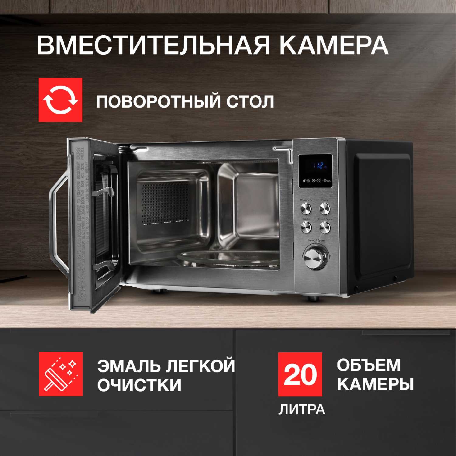 - + Многофункциональная микроволновая печь, дверца зеркальная что очень красиво, часы яркие кнопка не застревает