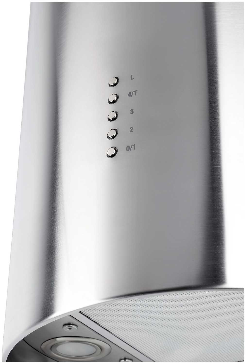 - Дизайн подсветки усиливает визуальную «космическую» эстетику вытяжки.