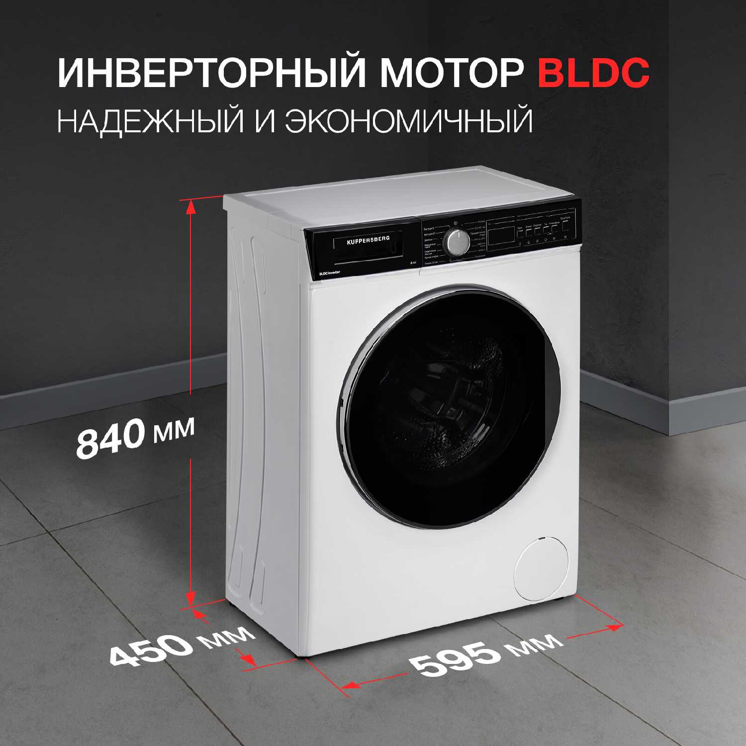 Инверторный мотор обеспечивает тишину работы и энергоэффективность. Шланг слива имеет нестандартный диаметр — для подключения может потребоваться хомут (входит в комплект не всегда). Система автовзвешивания предотвращает дисбаланс при отжиме, но требует минимальной загрузки для активации режима.
