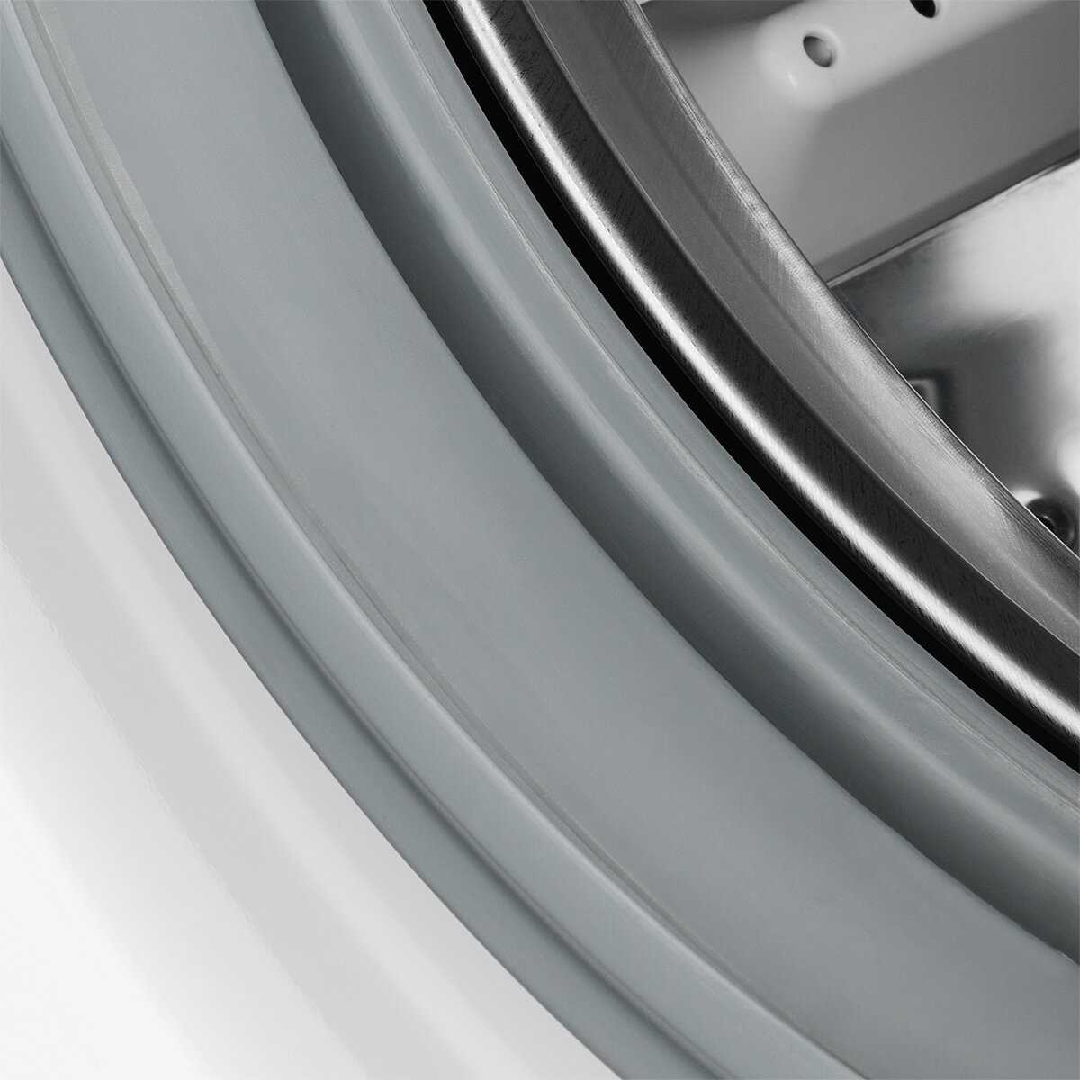 - Инверторный двигатель обеспечивает плавный разгон барабана до 1200 оборотов, что исключает "прыжки" даже на неровных поверхностях.