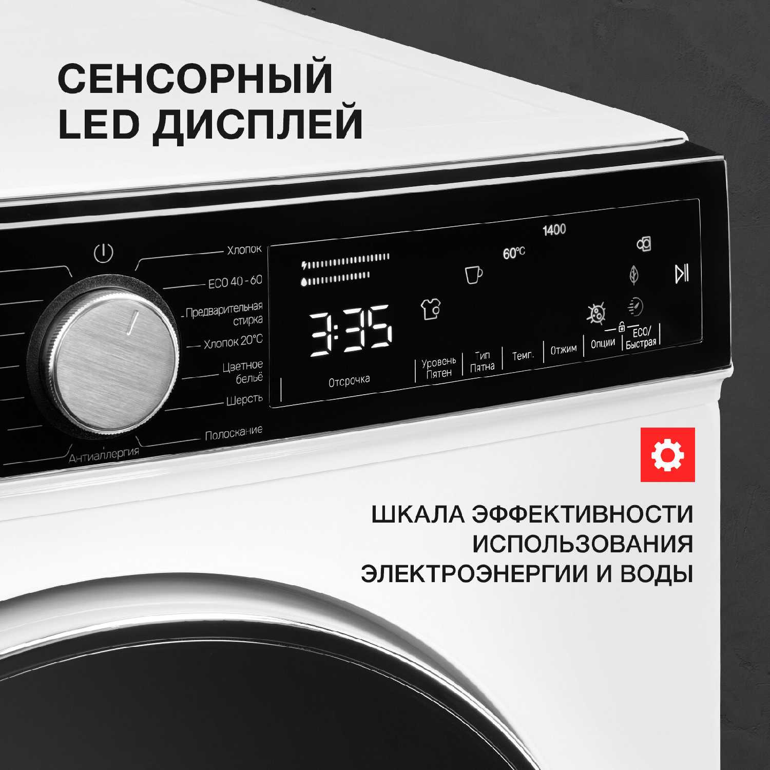 - + Досталась недорого по акции плюс 10000 балов плюса. купил через сплит, на четыре месяца. Огроменная, 10 кг, 1400 оборотов, инверторный двигатель, то что надо!