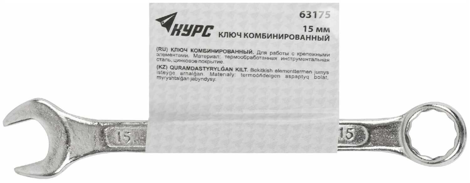 Характеристи КУРС Ключ комбинированный 15мм (63175)
