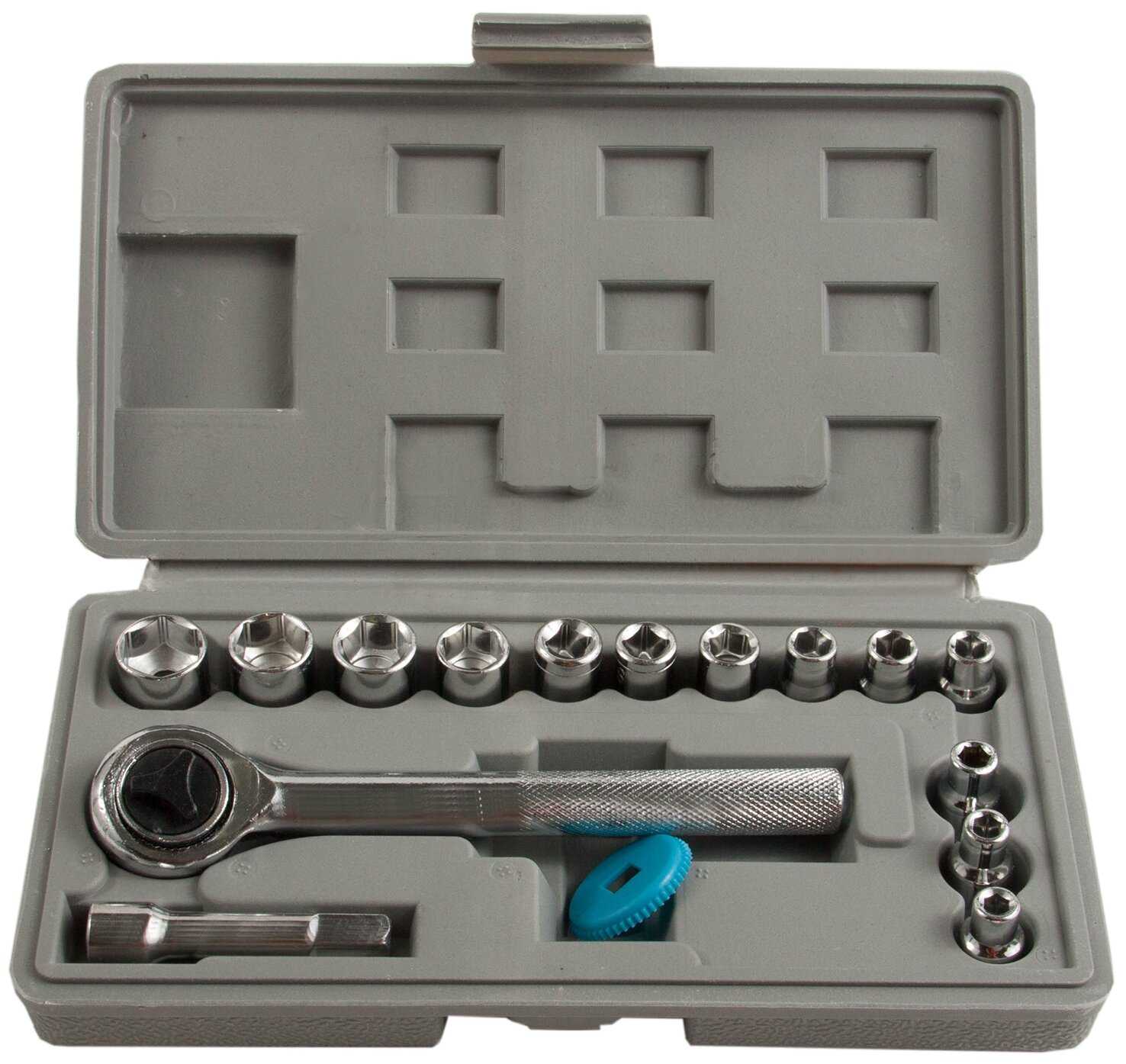 | Дополнительная информация : | Набор торцевых головок КУРС 65015, 17 предм., серебристый |
