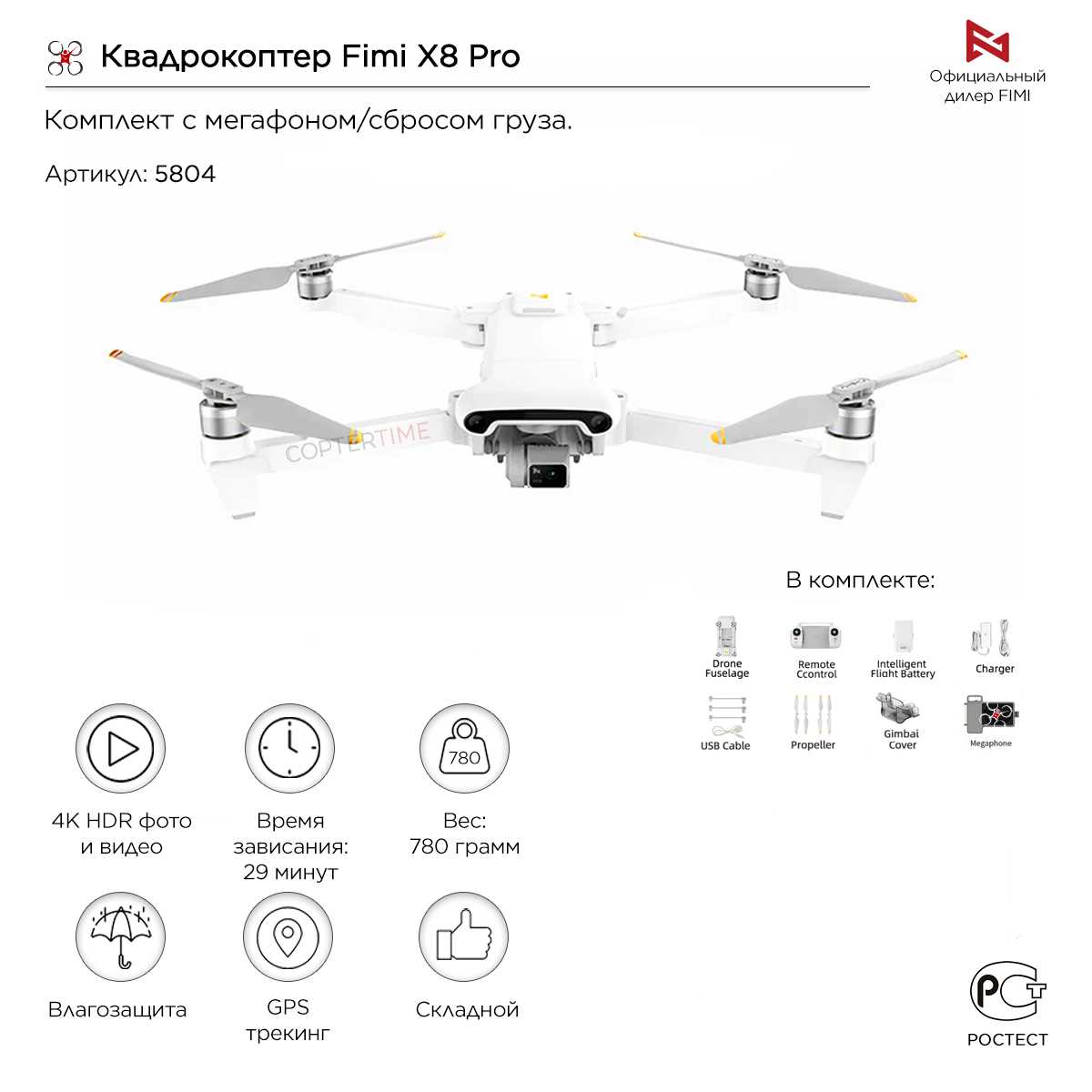 Характеристики:- квадрокоптер