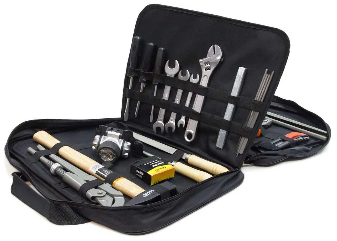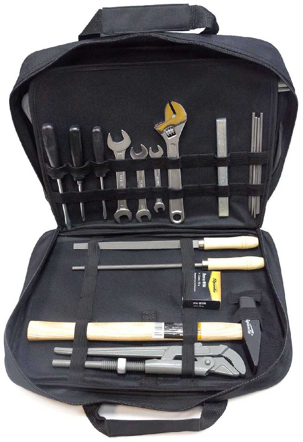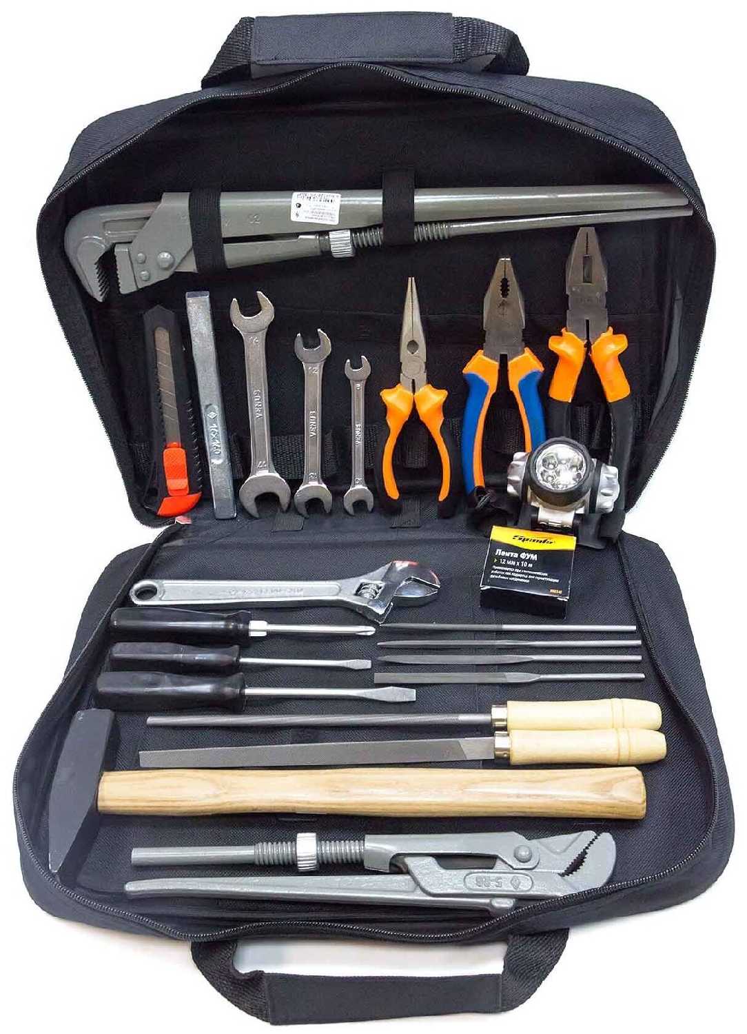 | Инструменты в комплекте : | ключ разводной, ключ трубный рычажный, ключи гаечные, круглогубцы, молоток, напильник по металлу, отвёртки, плоскогубцы |