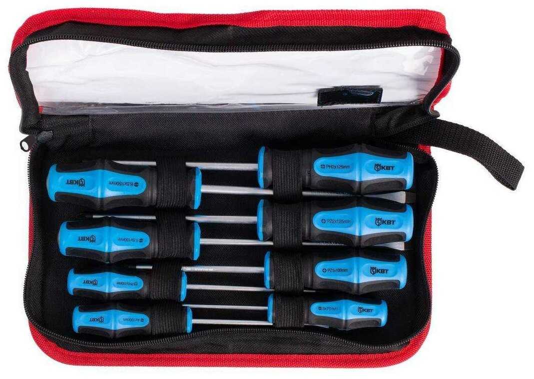 - + Хороший набор отвёрток. Удобный кейс:отвёртки не потеряются. Использую в работе часто. Рабочие головки не стачиваются от частого использования.