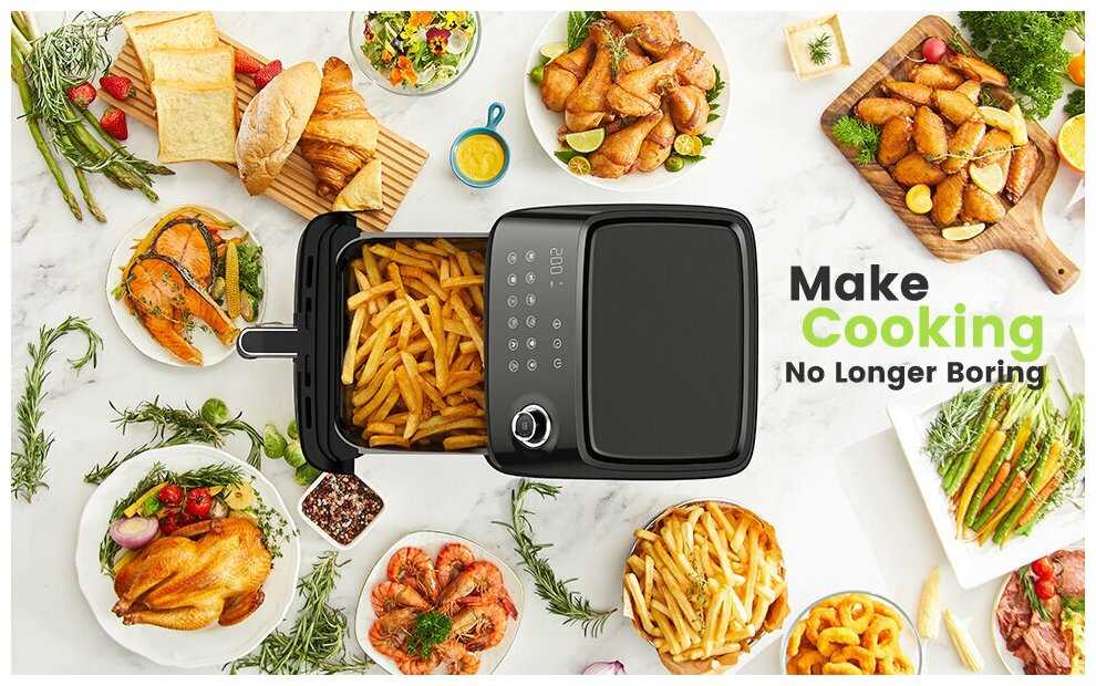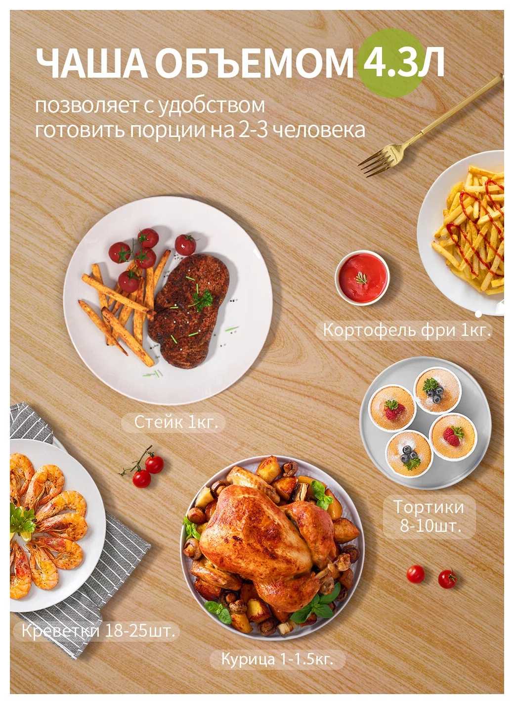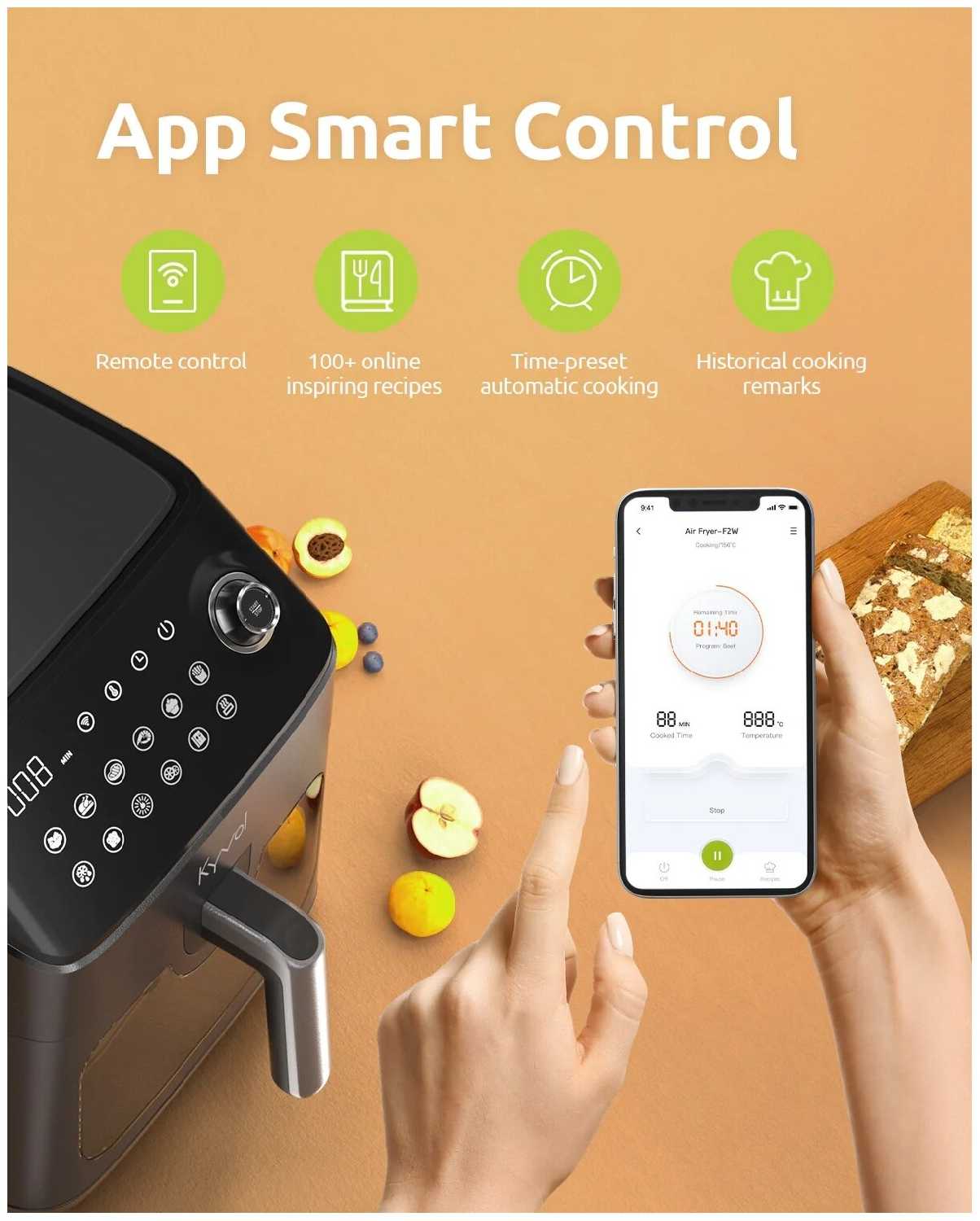 - + Удобно готовить и контролировать с телефона. Готовит без масла.
