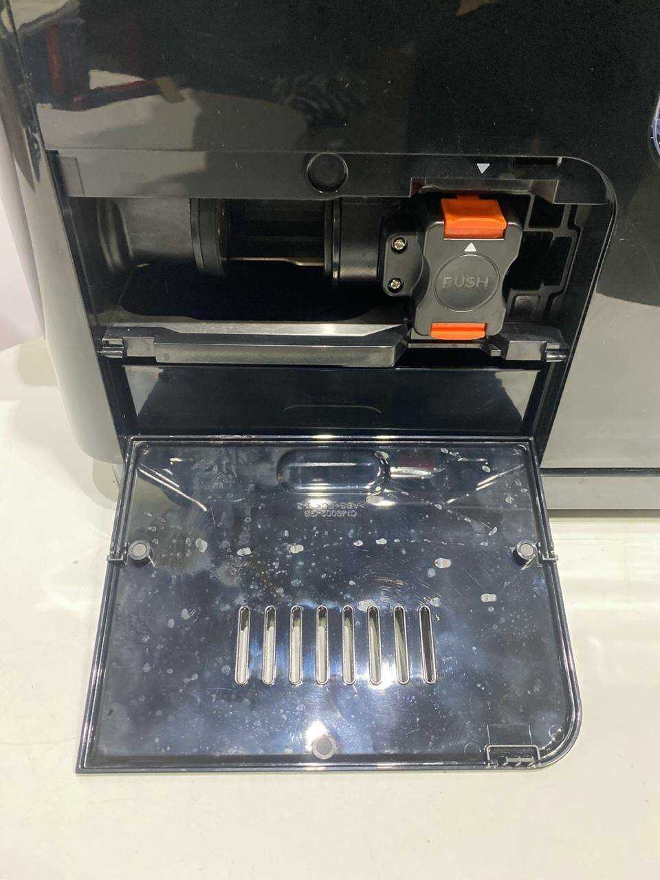 Поддон для жмыха гораздо больше, чем у больших машин, варочный пресс - наоборот компактный - легко вытаскивается и вставляется со щелчком.