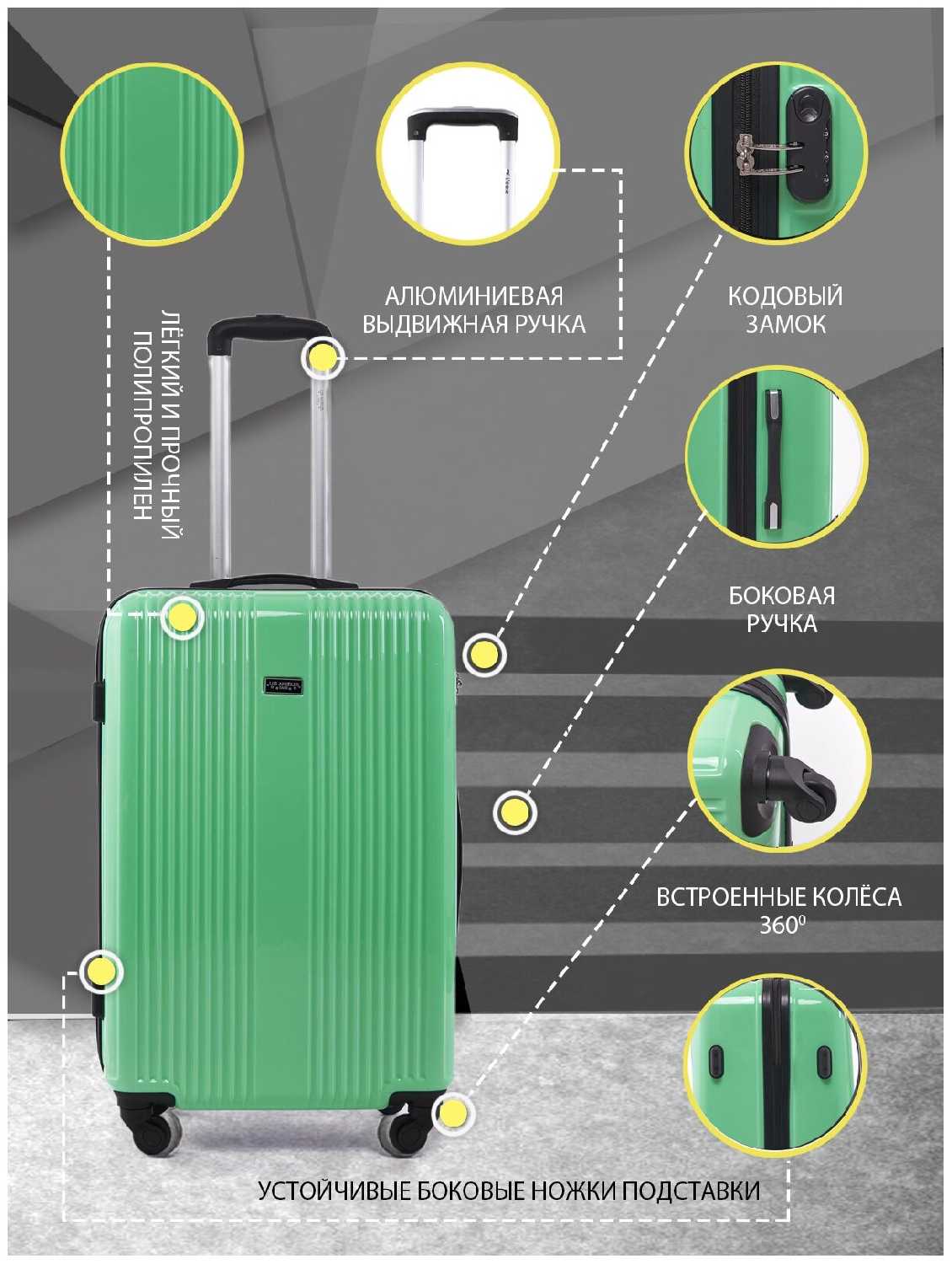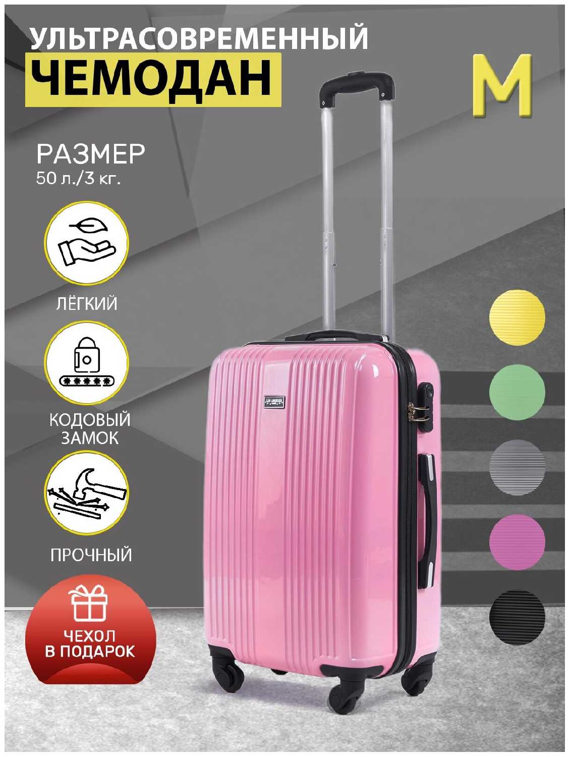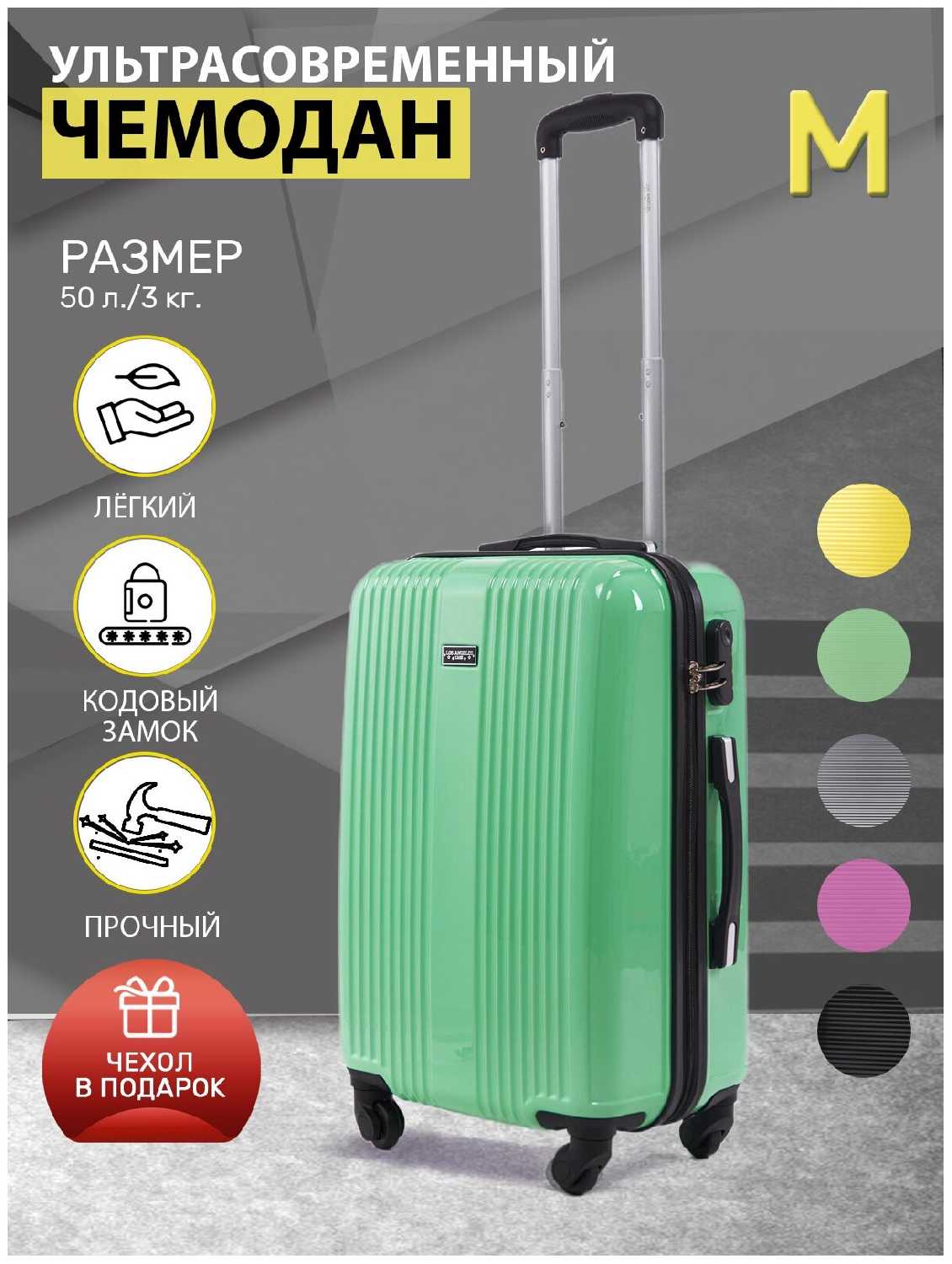 - + Прочный и удобный чемодан среднего размера. Надежный кодовый замок