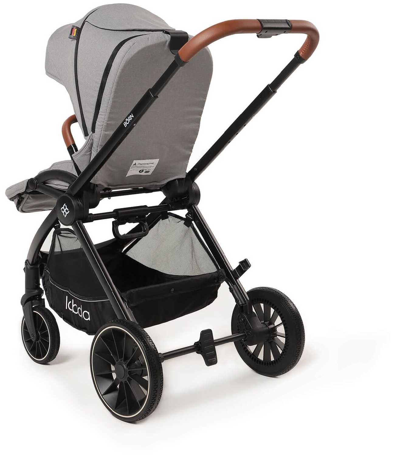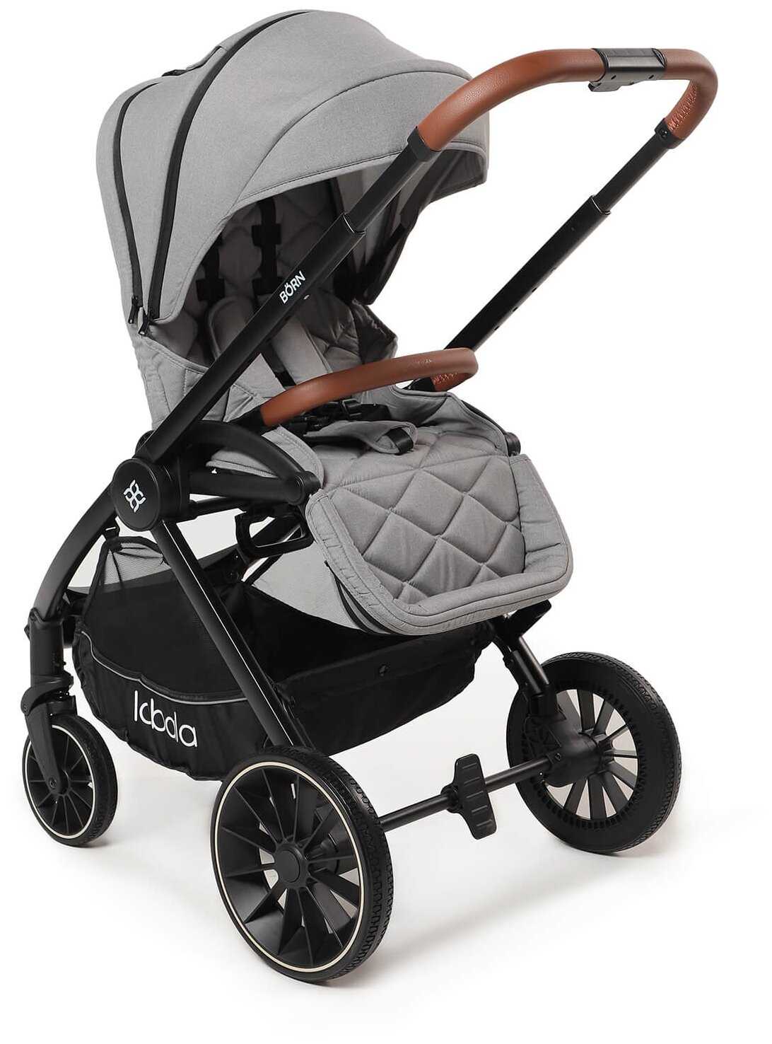 перестановка блока лицом/спиной, корзина для покупок, перекидная ручка, регулировка высоты ручки, ручной тормоз, съемные колеса