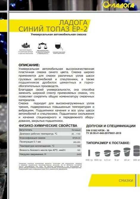 Характеристи ЛАДОГА Смазка Топаз EP-2 (туба 400гр)