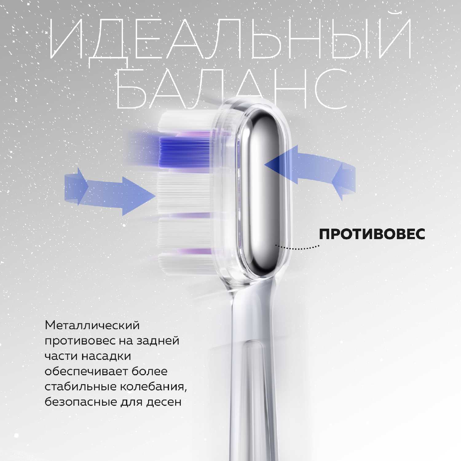 - Комплектные насадки визуально меньше стандартных для премиальных щеток.