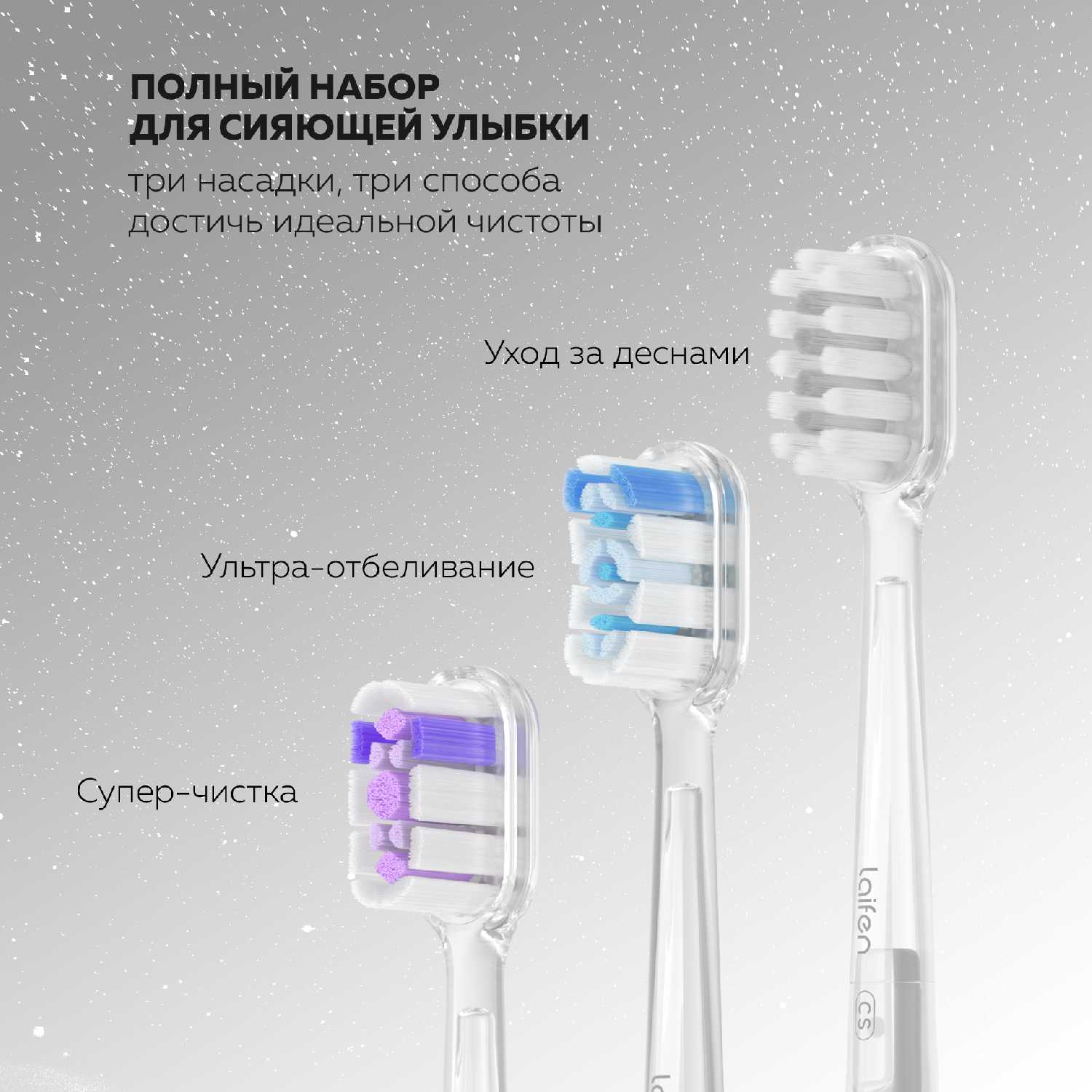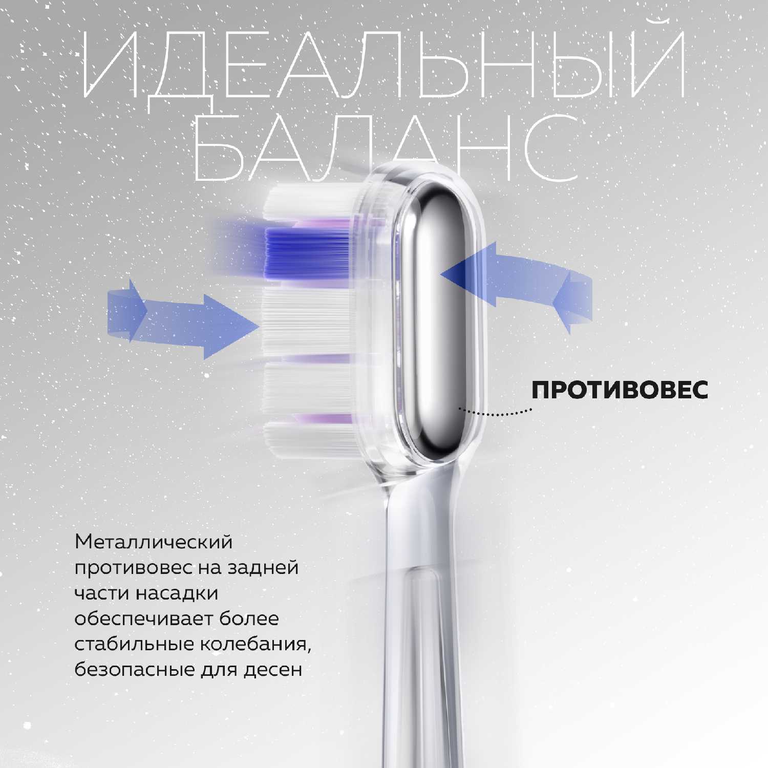 - Три насадки разной жесткости (мягкая, средняя, жесткая) адаптированы под индивидуальную чувствительность десен.