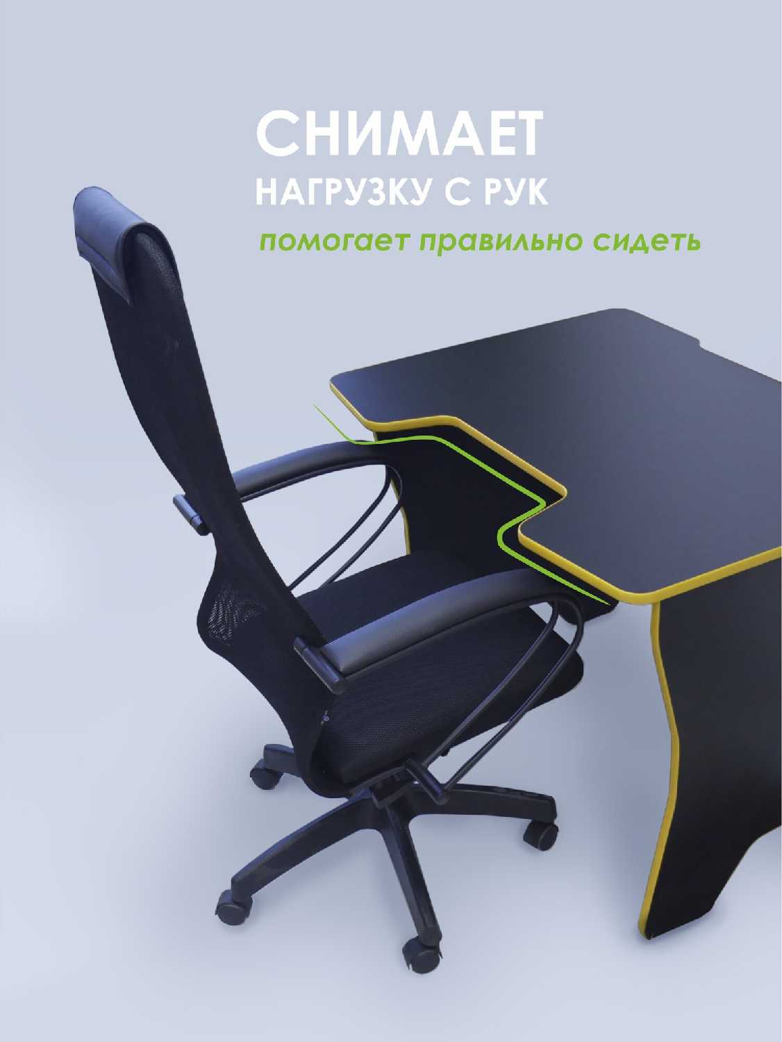 Форма столешницы позволяет сидеть с прямой спиной, опираясь локтями. Комфортная для игр и работы за ПК. Пользователи отмечают эргономику: ноги не упираются, руки в удобном положении. Подходит для длительного сидения.
