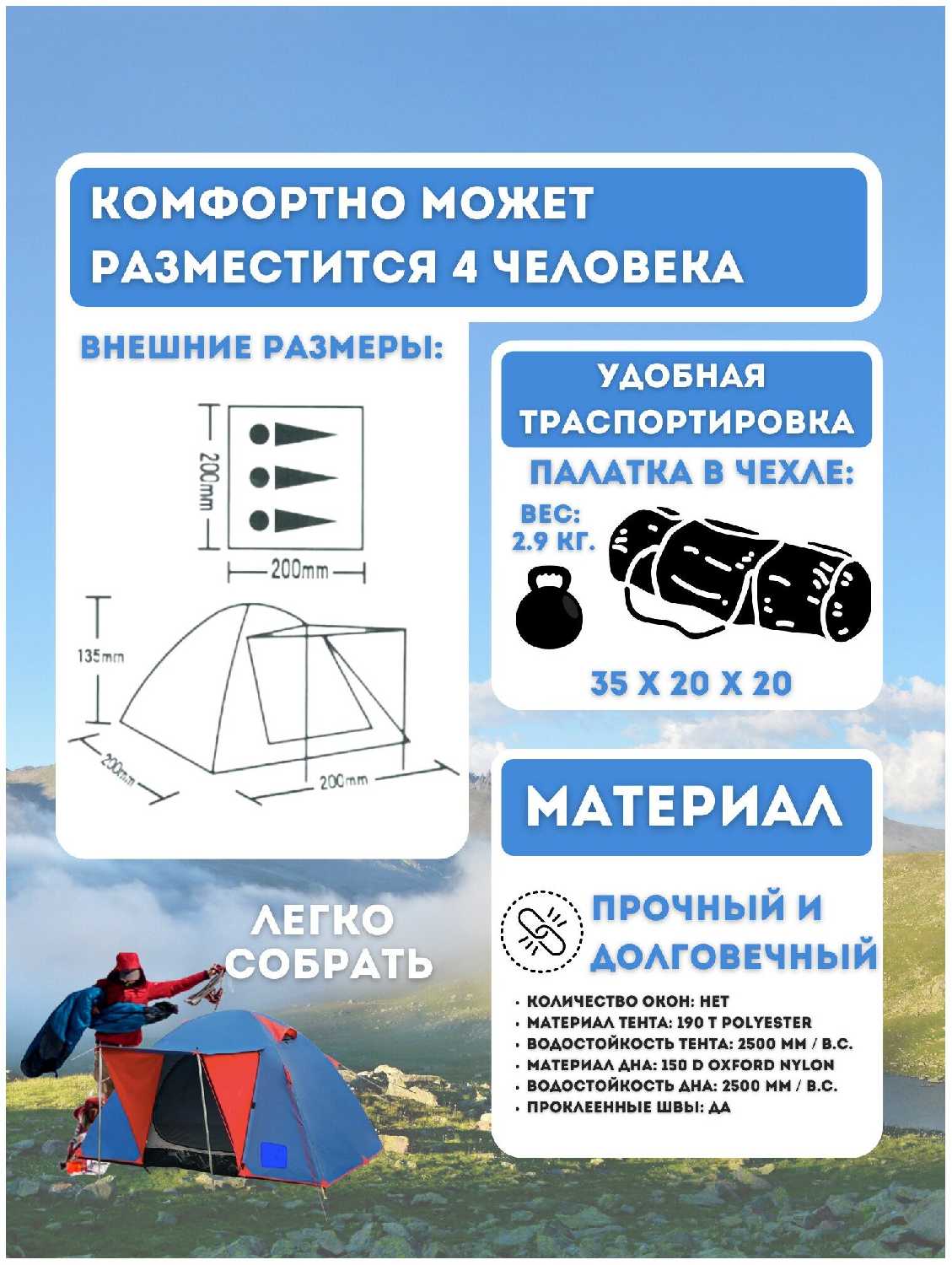 Отзывы о Палатка туристическая кемпинговая LANYU LY-1652