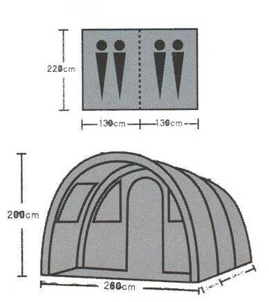- Просторная, вмещает семью с матрасами, столом, стульями, газовой плитой и вещами без необходимости в дополнительном шатре.