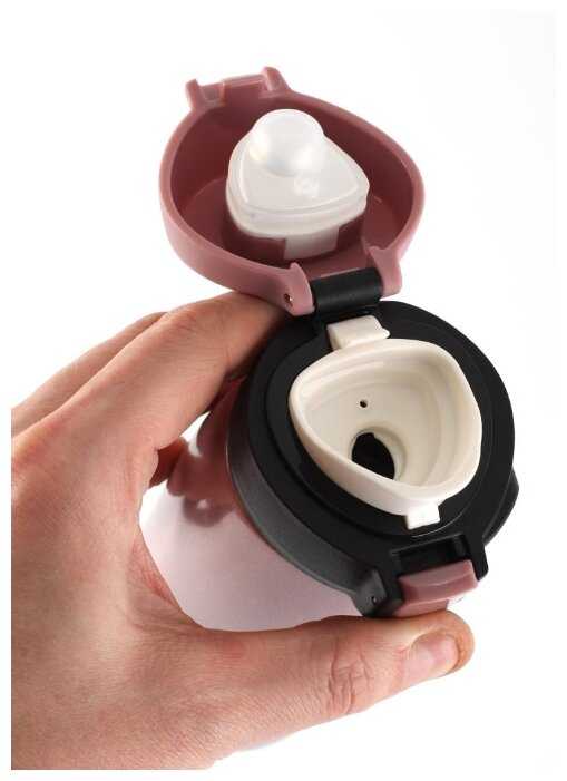 - Откидная крышка открывается одной рукой нажатием на клапан, удобно пить в любом положении, включая за рулем или на ходу.