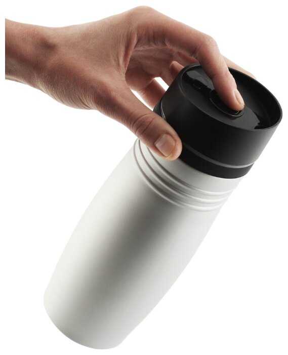 Особенности : | вакуумный, кнопка-клапан, непроливайка, отверстие для питья в крышке |