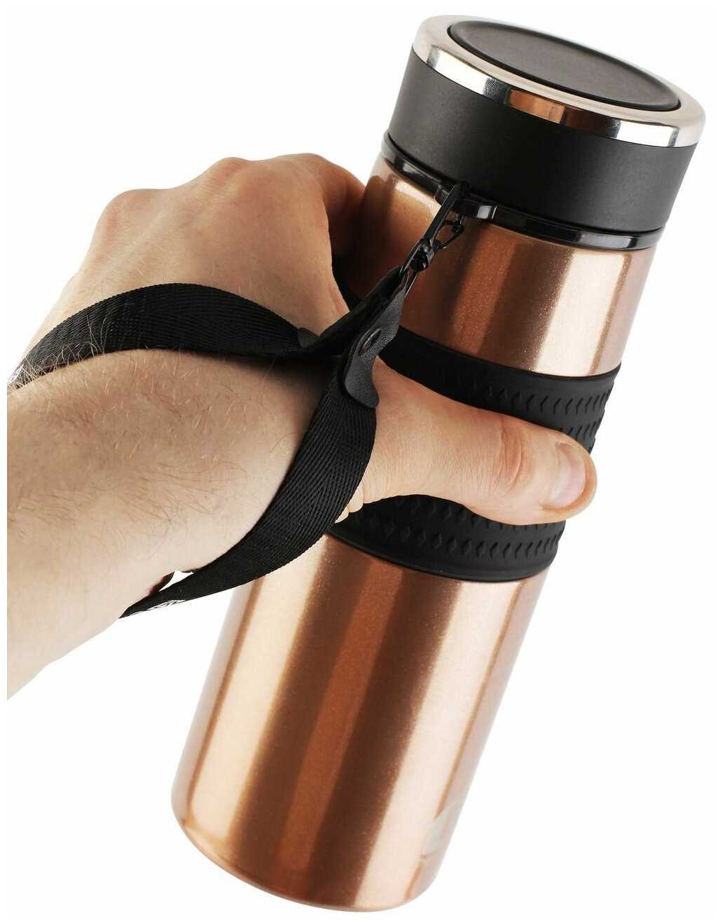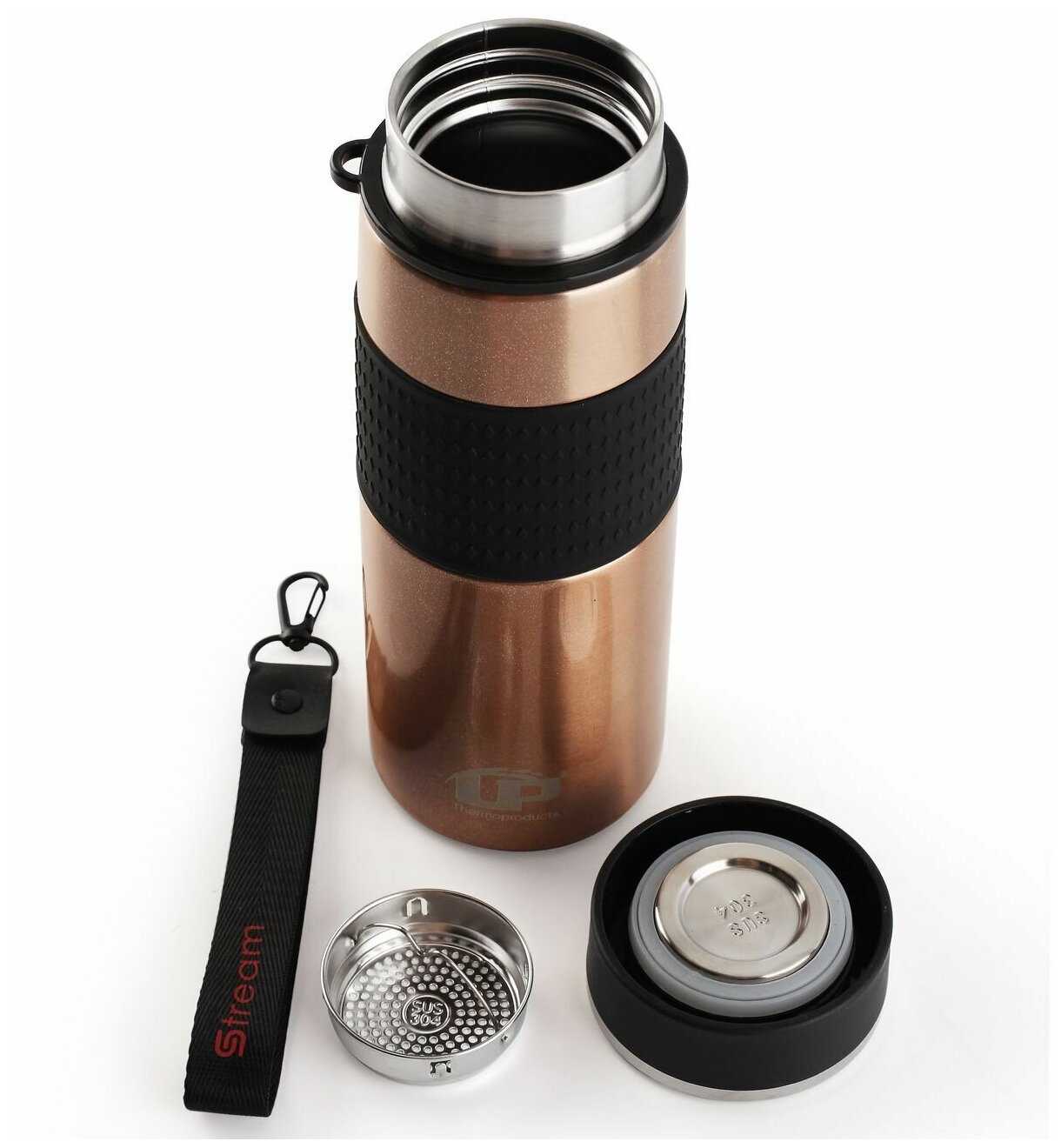 - + Цена потрясающая особенно с бонусами. Качество на довольно хорошем уровне. Удобный ремешок, удобное прорезиненное дно, крышка тоже в принципе удобная если понимать свои сценарии использования без встроенной кружки. Ситечко качественное, можно использовать как фильтр при заваривании трав в колбе или в качестве заварочного если чай класть непосредственно в него. Тепло и холод держит примерно как и заявлено, а ни как дешманские низкокачественные термосы.