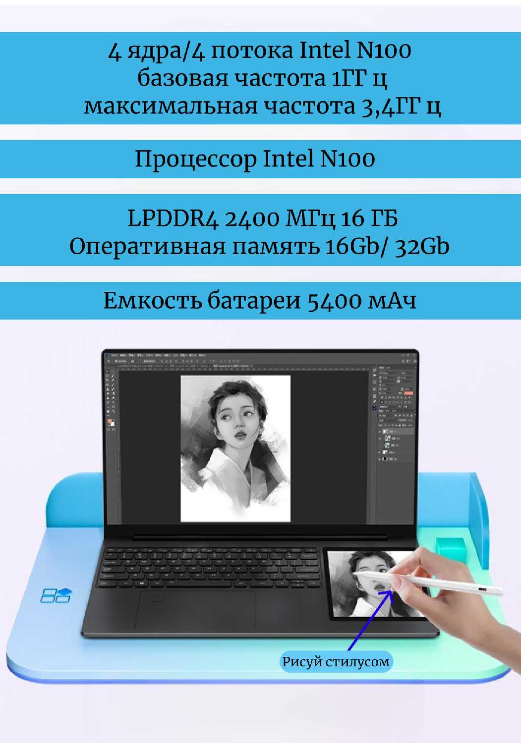 Отзывы о Ноутбук 15,6" + сенсорный 7" Intel N100 RAM 16 Гб SSD 2 Тб NVME
