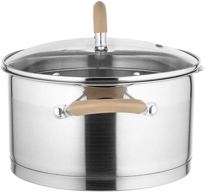 Хорошая кастрюля, удобный носик для слива, два разных размеров отверстий на крышке для слива.