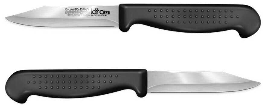 - + Небольшой, очень острый нож, удобная форма лезвия с удлиненным "носом" позволяет чистить фрукты как скальпелем. Хорошо моется. В руке не скользит благодаря рельефной рукояти. Не ждите от него ничего, кроме резки фруктов.