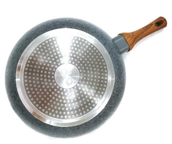 Мне очень нравится структура сковороды. Внешний вид под дерево тоже приятный. Моется отлично и жарит хорошо, в том числе, блины