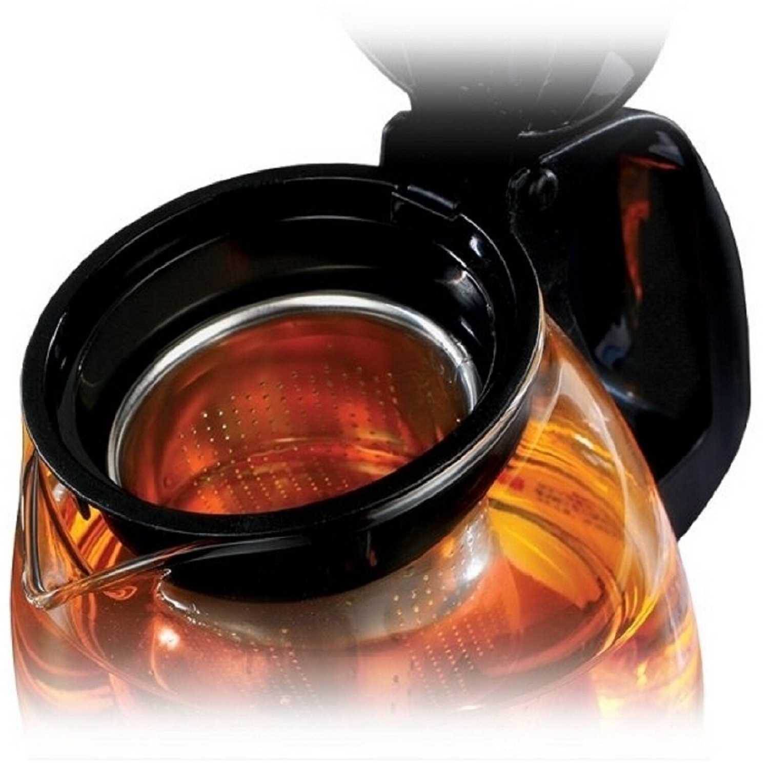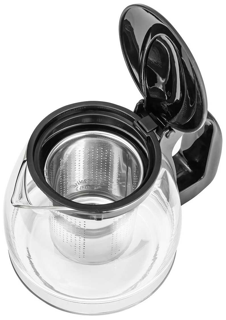 - Прозрачное стекло позволяет контролировать процесс заваривания и уровень жидкости.