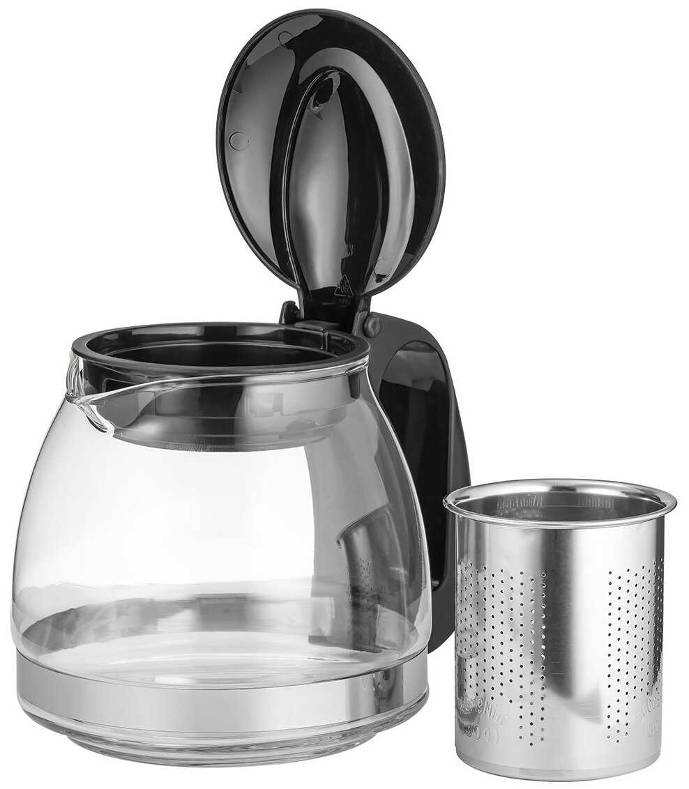 - - Тонкое боросиликатное стекло - может быстро лопнуть (был опыт с таким же (внешне) чайником, но другого производителя из магазина Галамарт). Тяжеловато достаётся чёрное кольцо, которое держит ситечко. Пользуюсь очень редко - перешла на чай в пакетиках (чай пью редко, меньше возни и мойки).