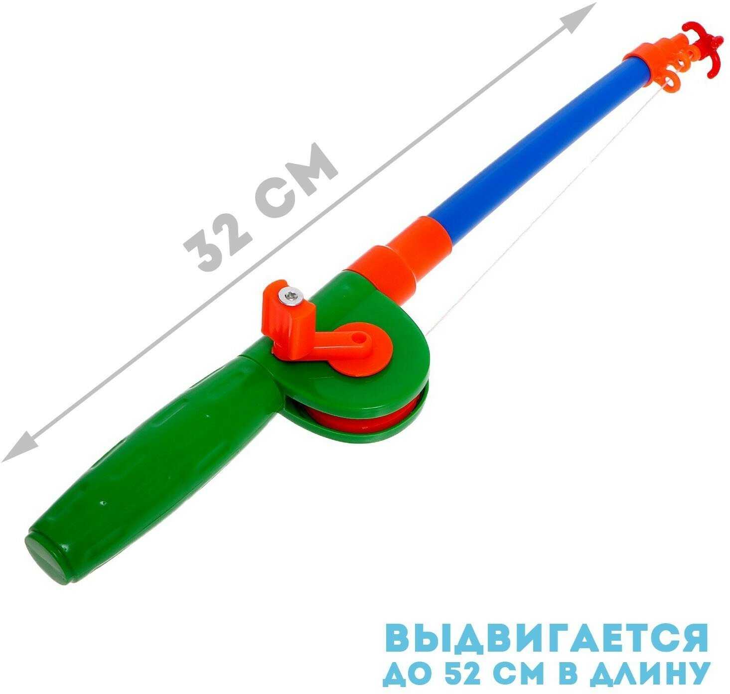 Дополнительная информация : | Удочка (выдвигается до 52 см в длину), 1 шт.: 32 × 3 × 6, 5 см. Сачок: 19 × 9, 5 × 1, 5 см. Рыбки половинчатые, 9 шт.: от 5, 5 × 1 × 7, 5 см до 9 × 1 × 6, 5 см. |